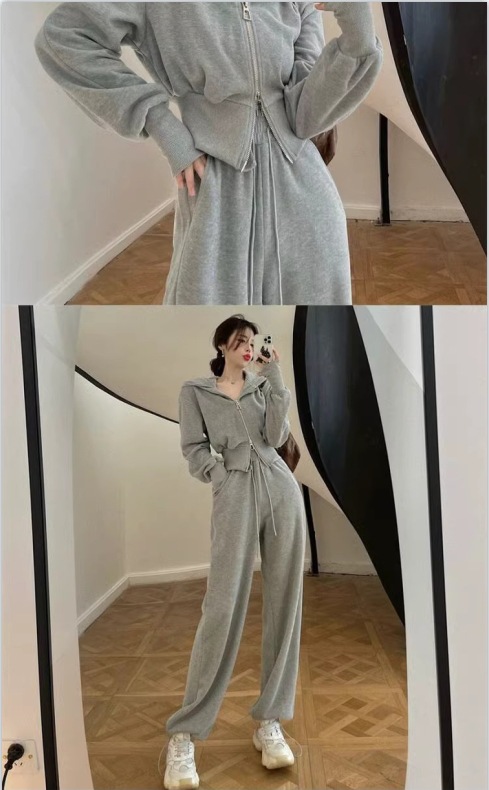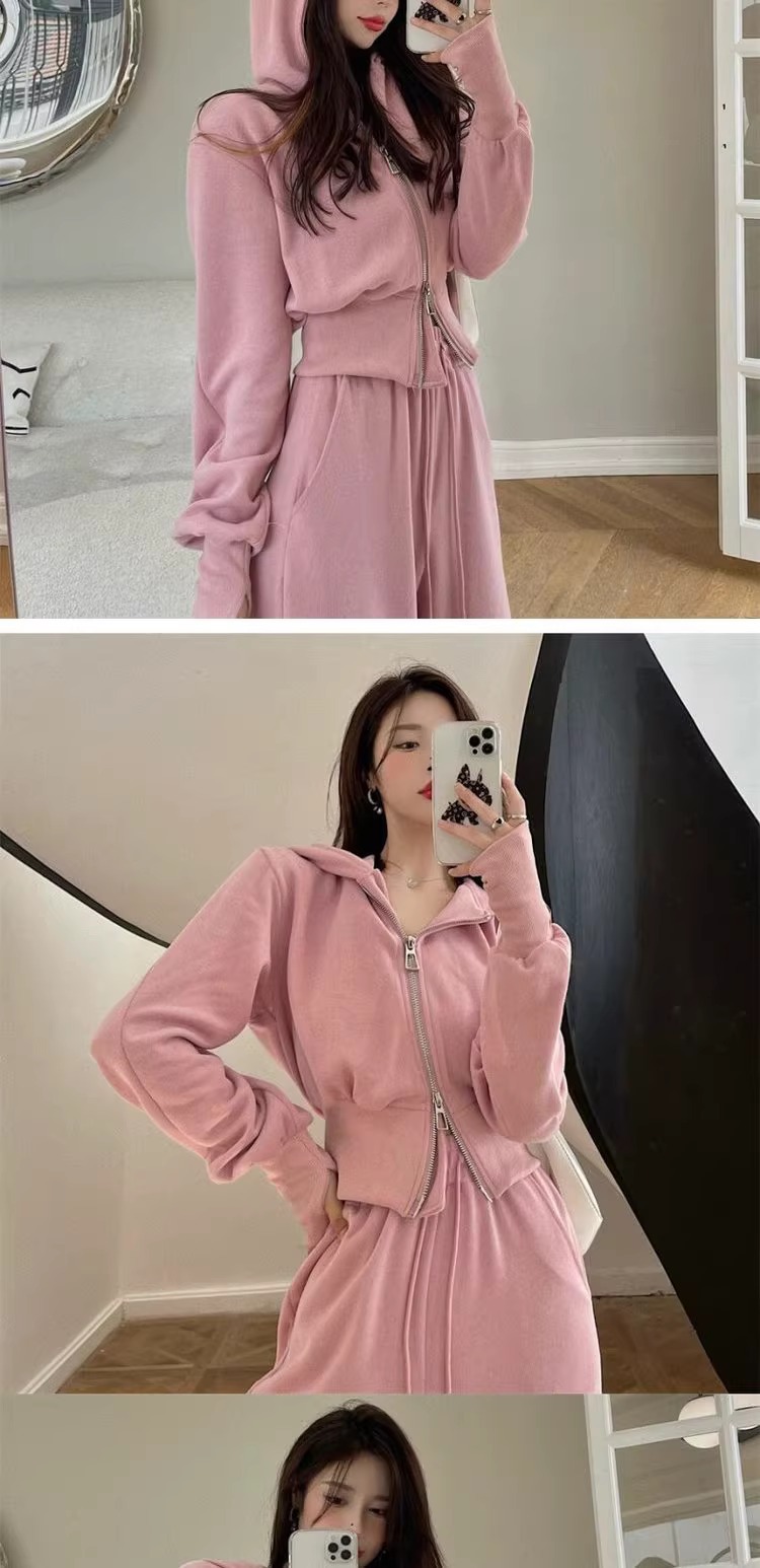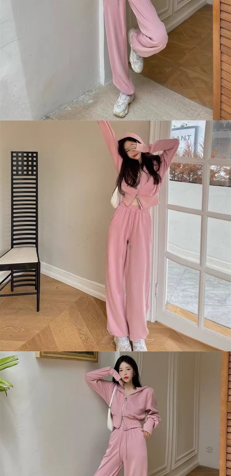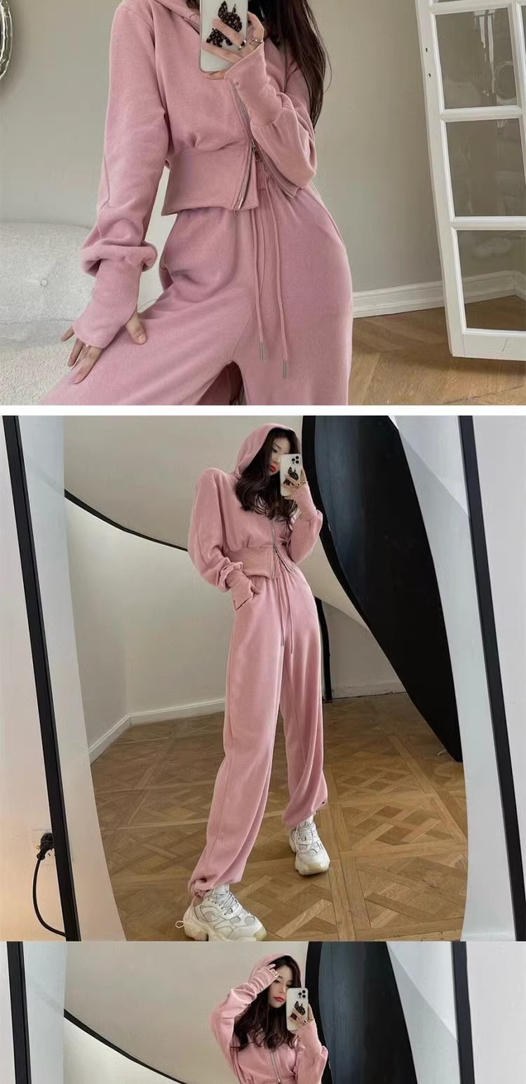 캐주얼 스포츠 세트 여자 2024 이른 봄 새로운 한국식 후드 재킷 높은 허리 드로 스트링 발목 묶인 바지 투피스 세트스토어 가기