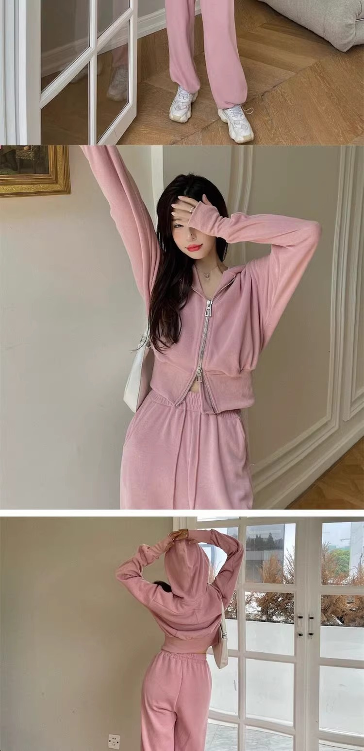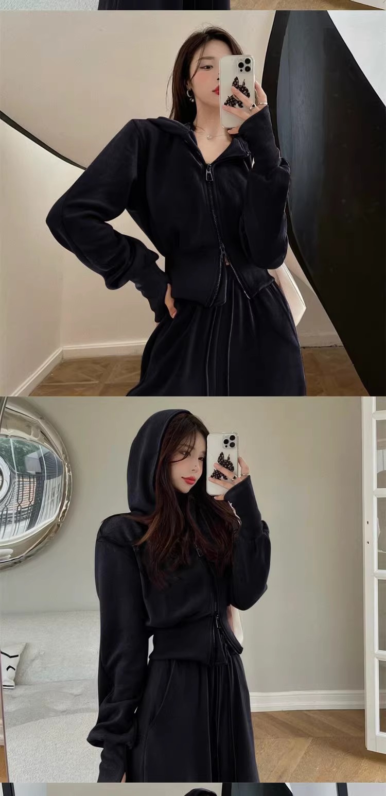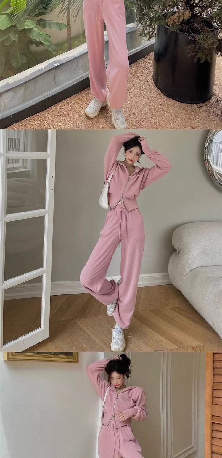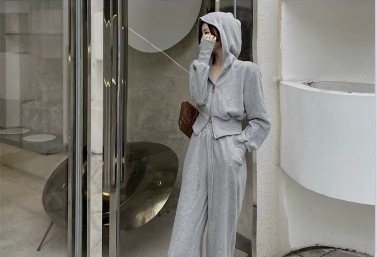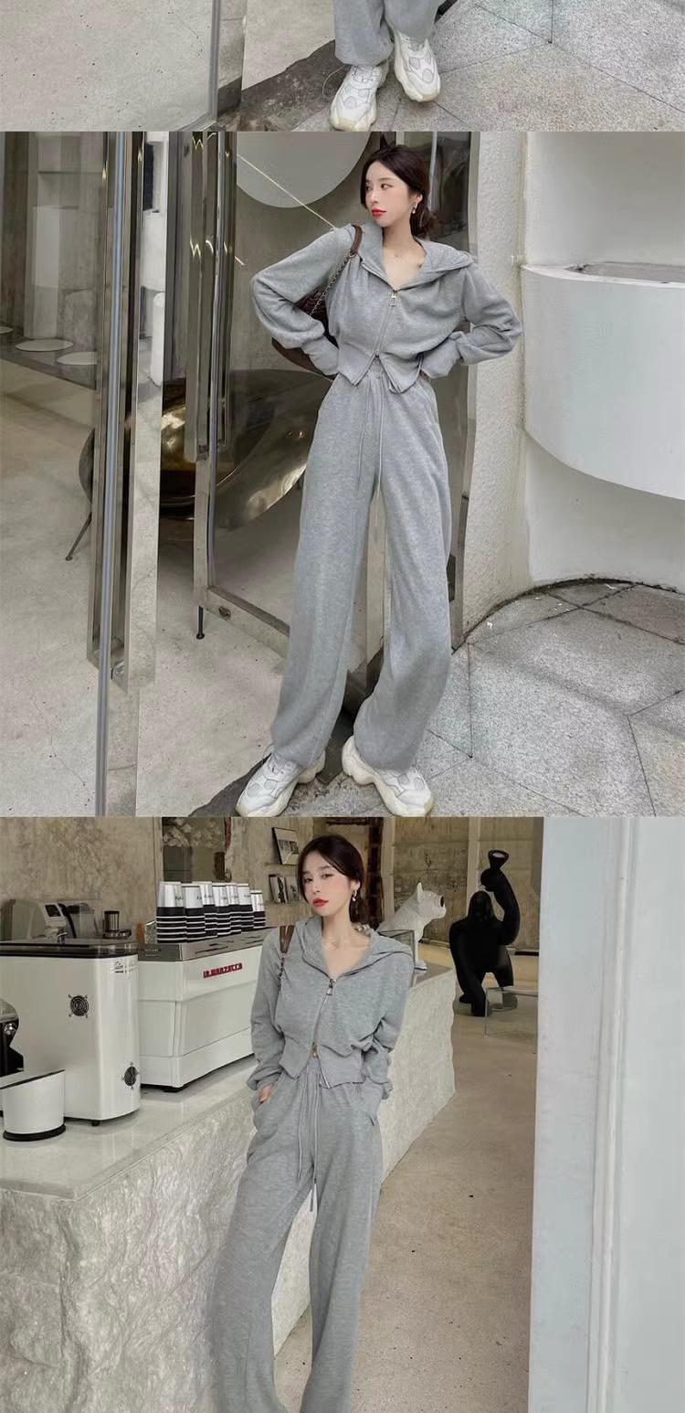 캐주얼 스포츠 세트 여자 2024 이른 봄 새로운 한국식 후드 재킷 높은 허리 드로 스트링 발목 묶인 바지 투피스 세트스토어 가기