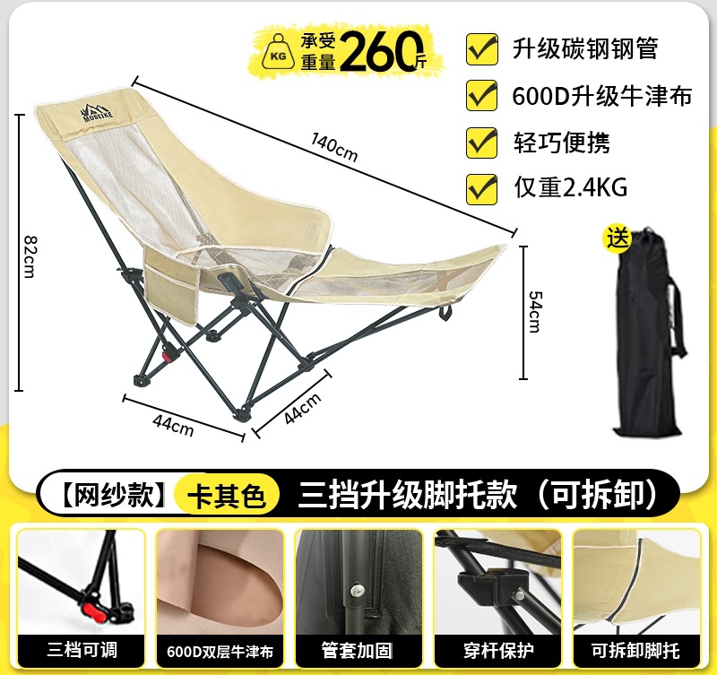 • [카키 메쉬 모델 - 발판 모델 - 탈부착 가능] 3단계 조절 및 리클라이닝 가능