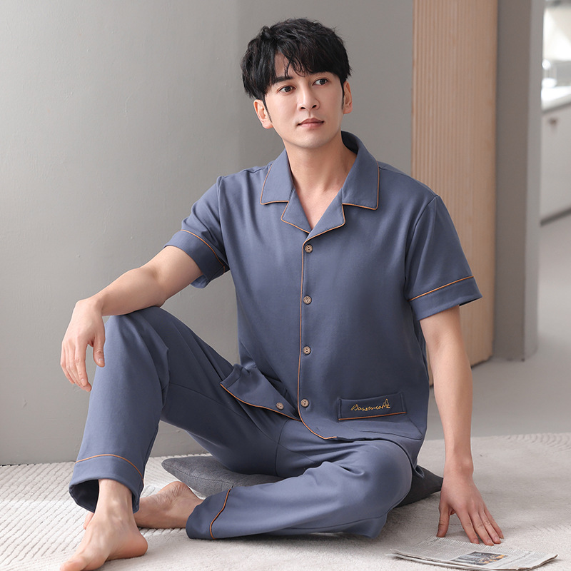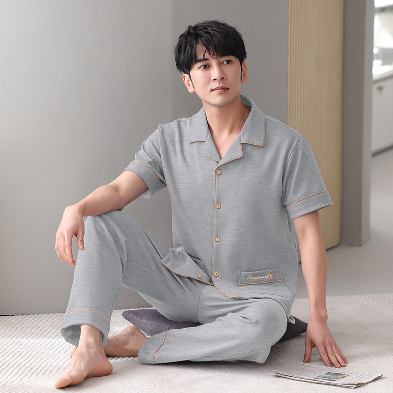 330 뚱뚱한 남자 시리즈 6XL7XL 잠옷 남성용 대형 반팔 바지 카디건 여름 홈 착용 얇은 세트