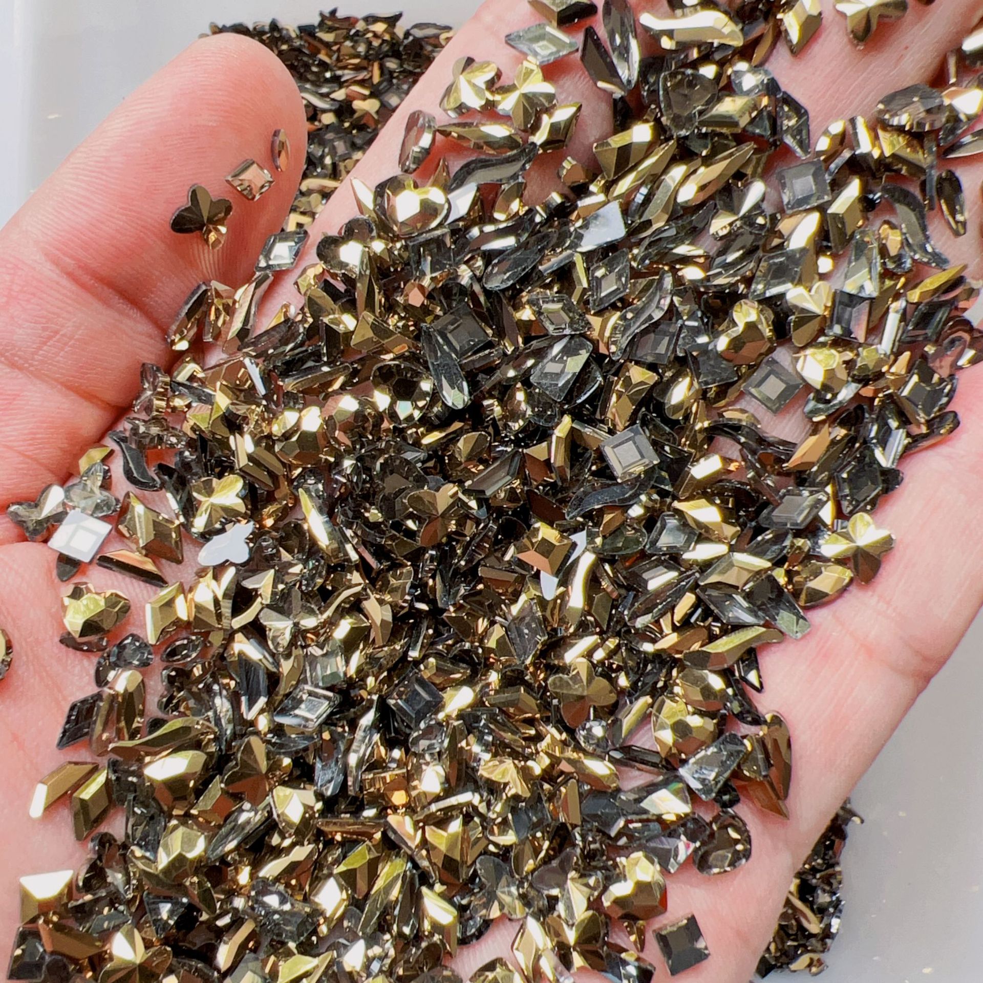 Wengenie 핫 미니 스몰 사이즈 샴페인 평면 특수 모양의 다이아몬드 슈퍼 플래시 크리스탈 유리 혼합 매니큐어 다이아몬드 도매