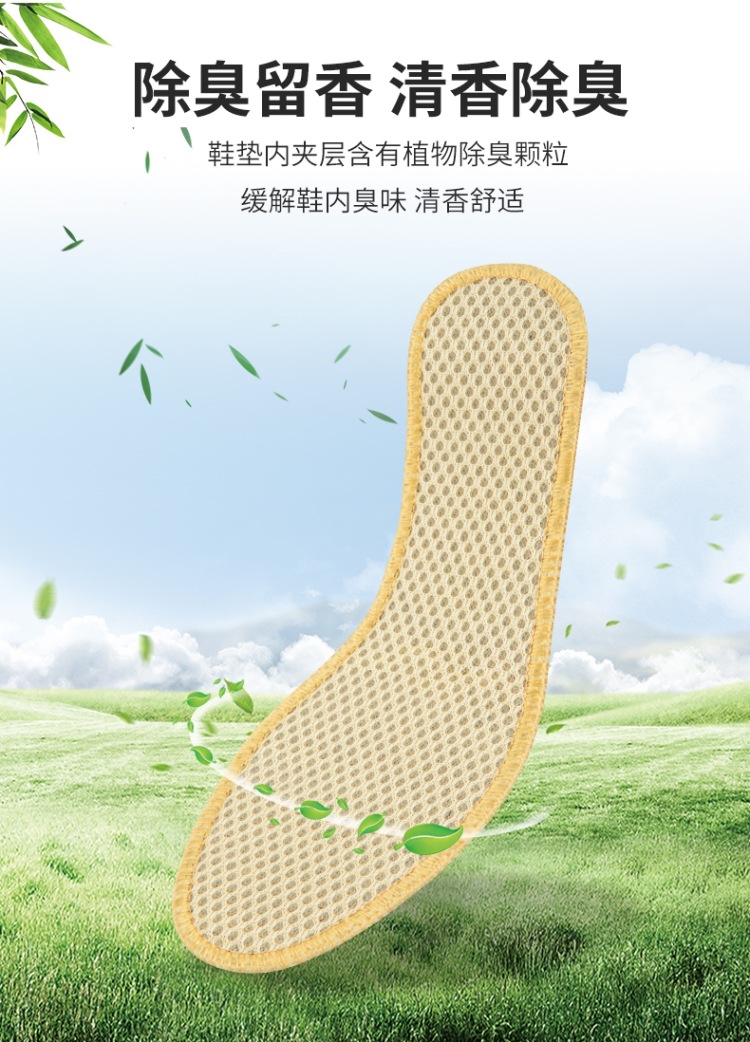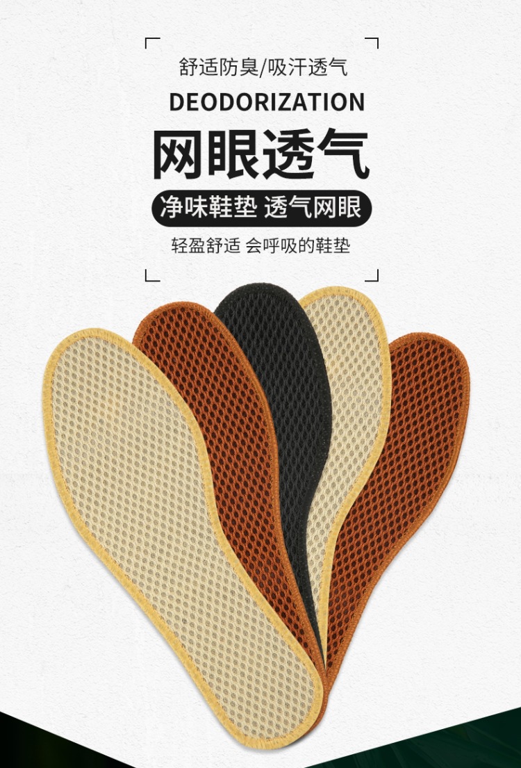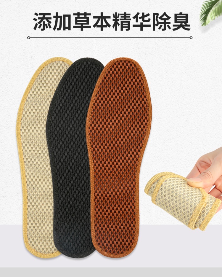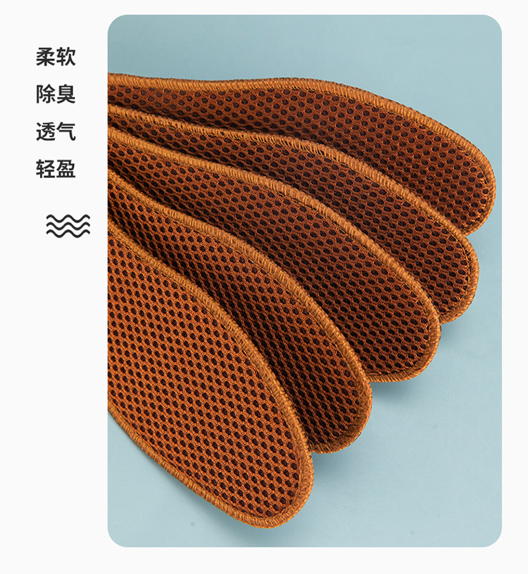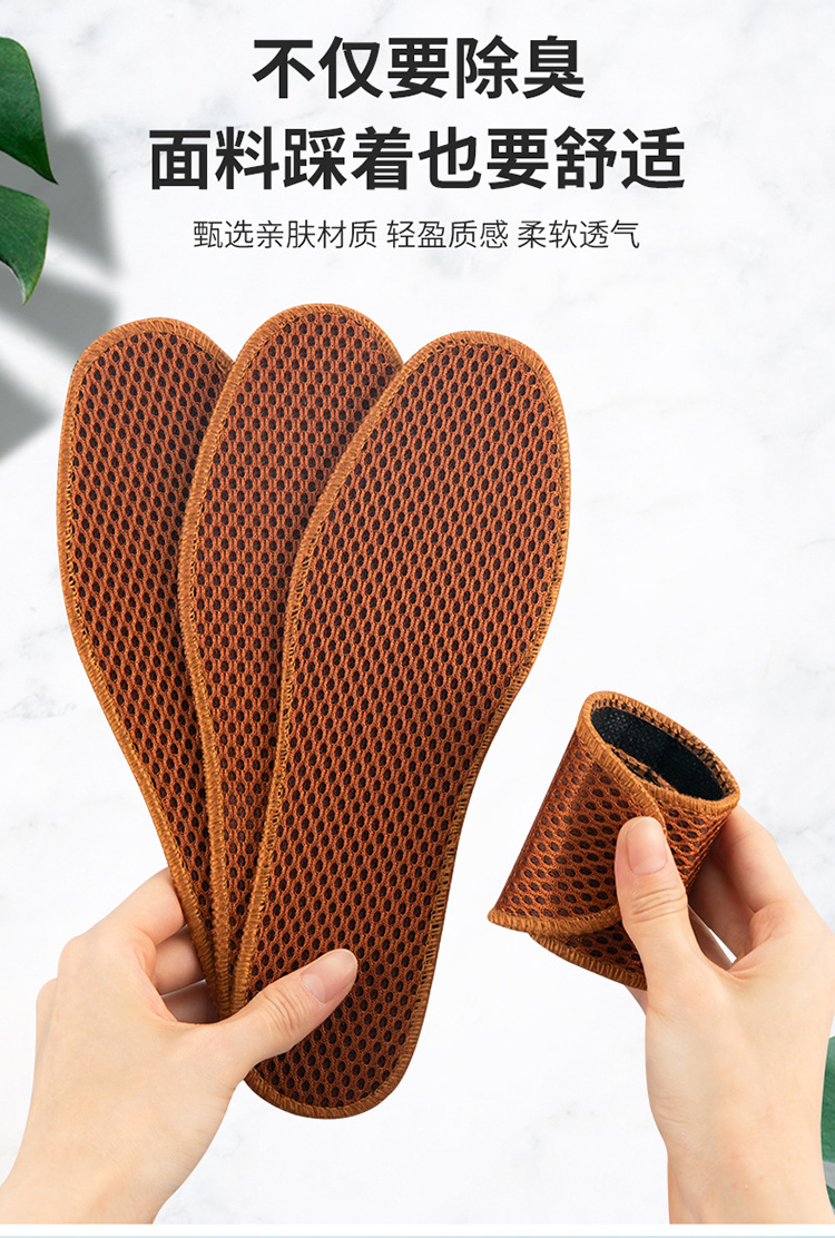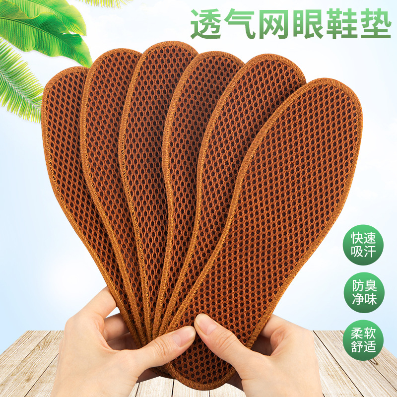대나무 숯 메쉬 깔창, 통기성, 땀 흡수성, 탈취제, 편안하고 부드러운 밑창, 두꺼운 남성용 및 여성용 스포츠 가죽 깔창, 공장 직접 판매