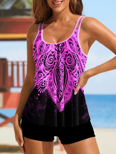 2024 새로운 유럽과 미국의 수영복 여성용 슬링 홀터 프린트 플러스 사이즈 탱치니 조절 어깨 끈 비키니 비키니스토어 가기