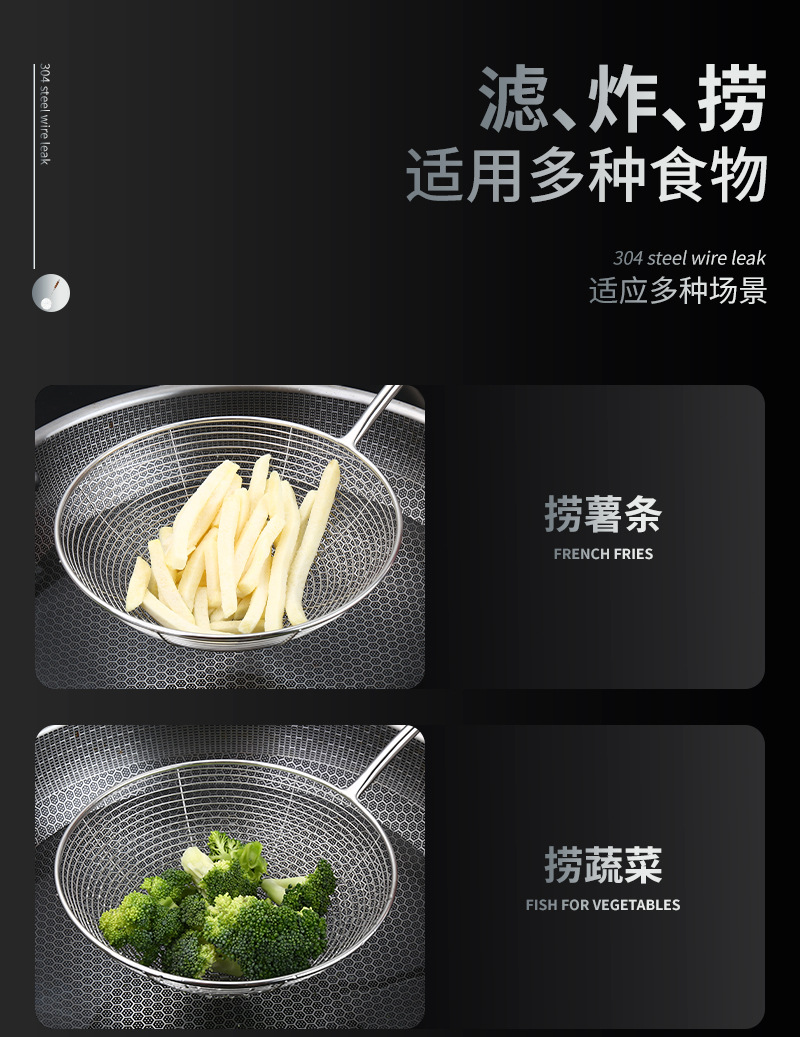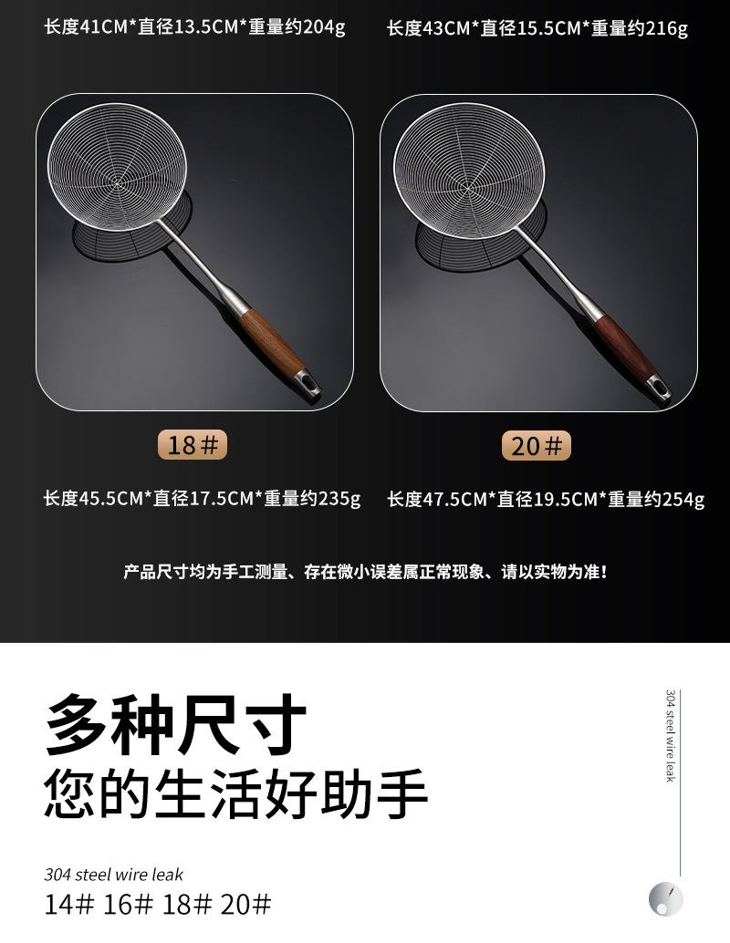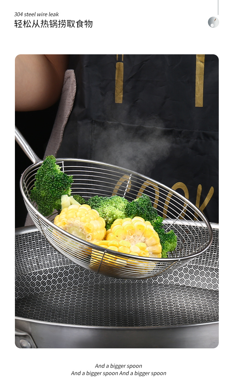 304 스테인리스 소쿠리 가정용 냄비 숟가락 라인 누수 튀김 국수 매운 뜨거운 만두 스트레이너 큰 크기