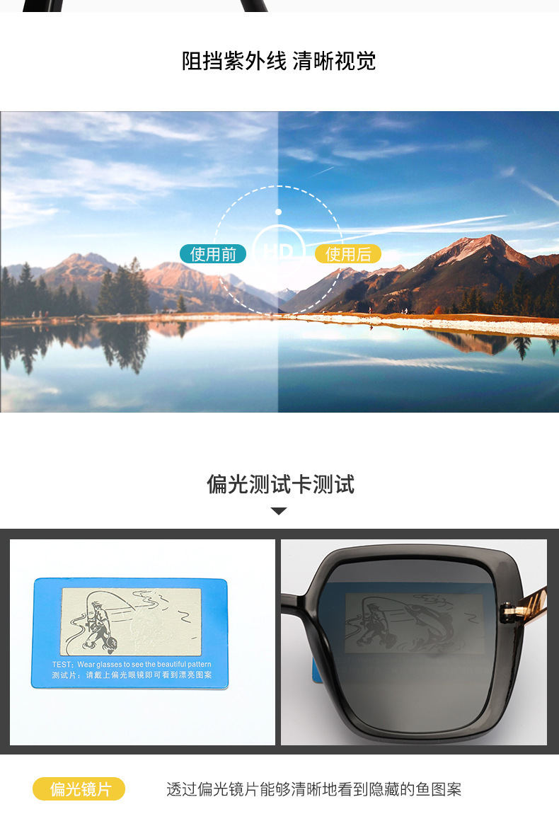 2024 새로운 여성 편광 선글라스 박스 한국 스타일, 복고풍 유행 자외선 차단 선글라스