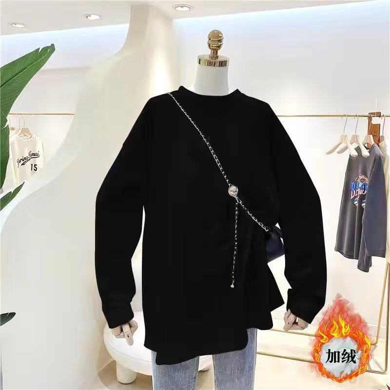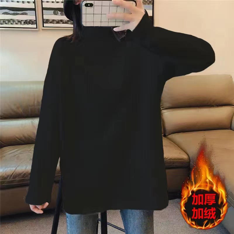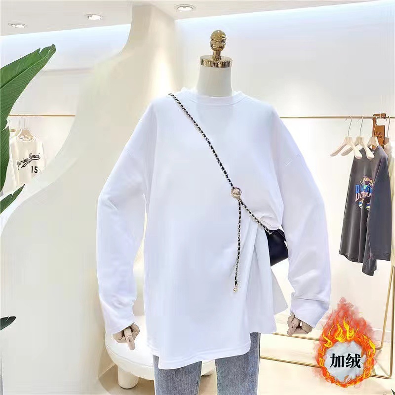 드 벨벳 기모 두껍게 된 중간 길이의 느슨한 내부 티셔츠 바닥 셔츠 여성의 세련된 가을과 겨울 화이트 이너 탑스토어 가기