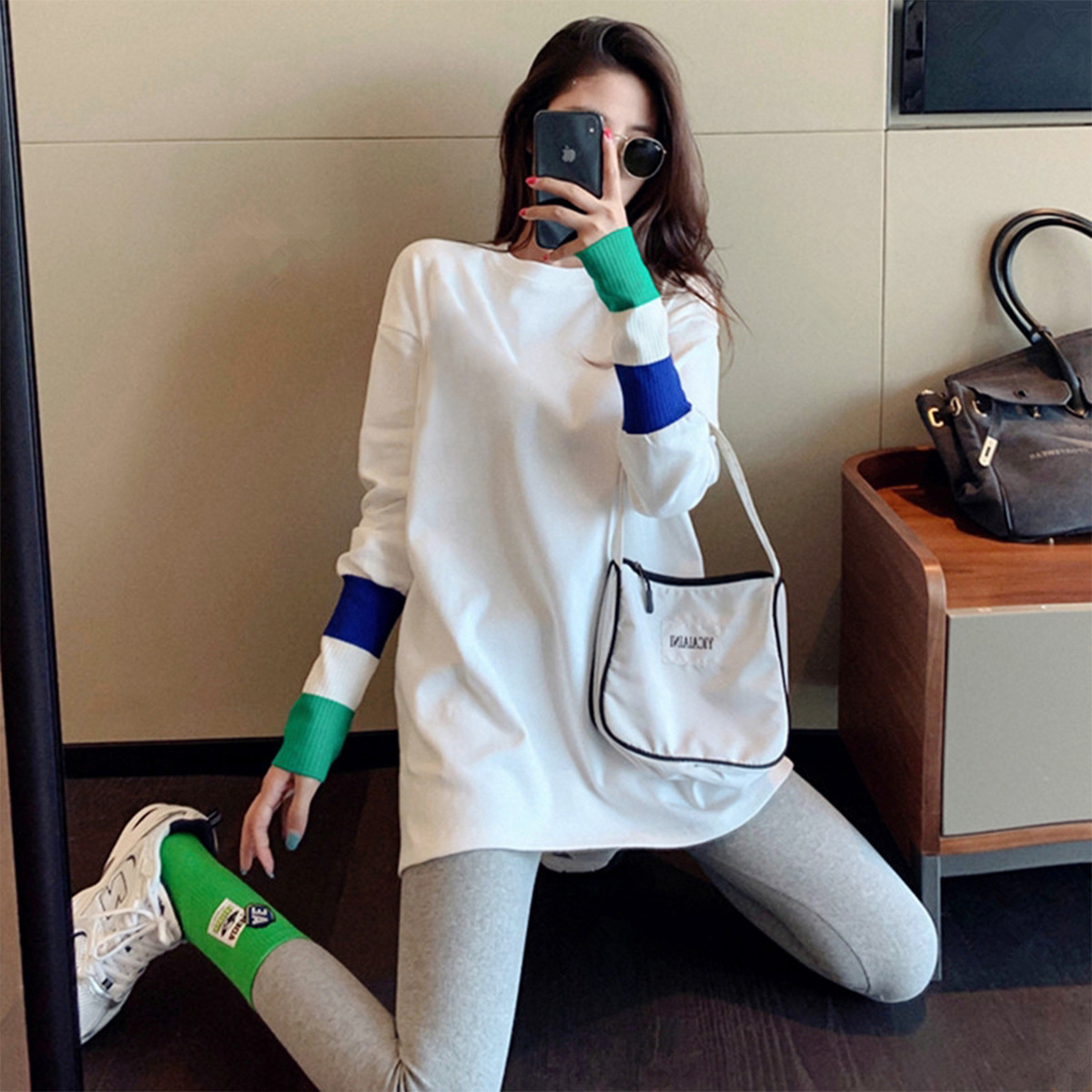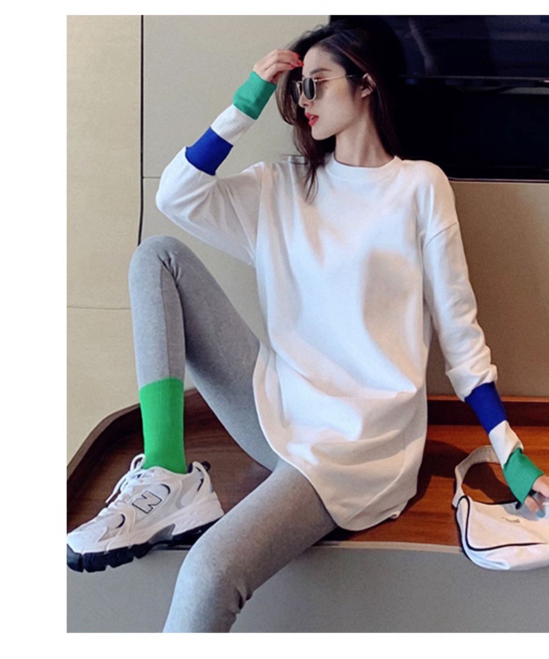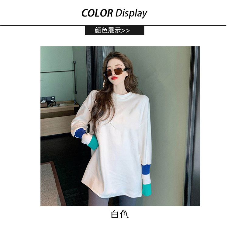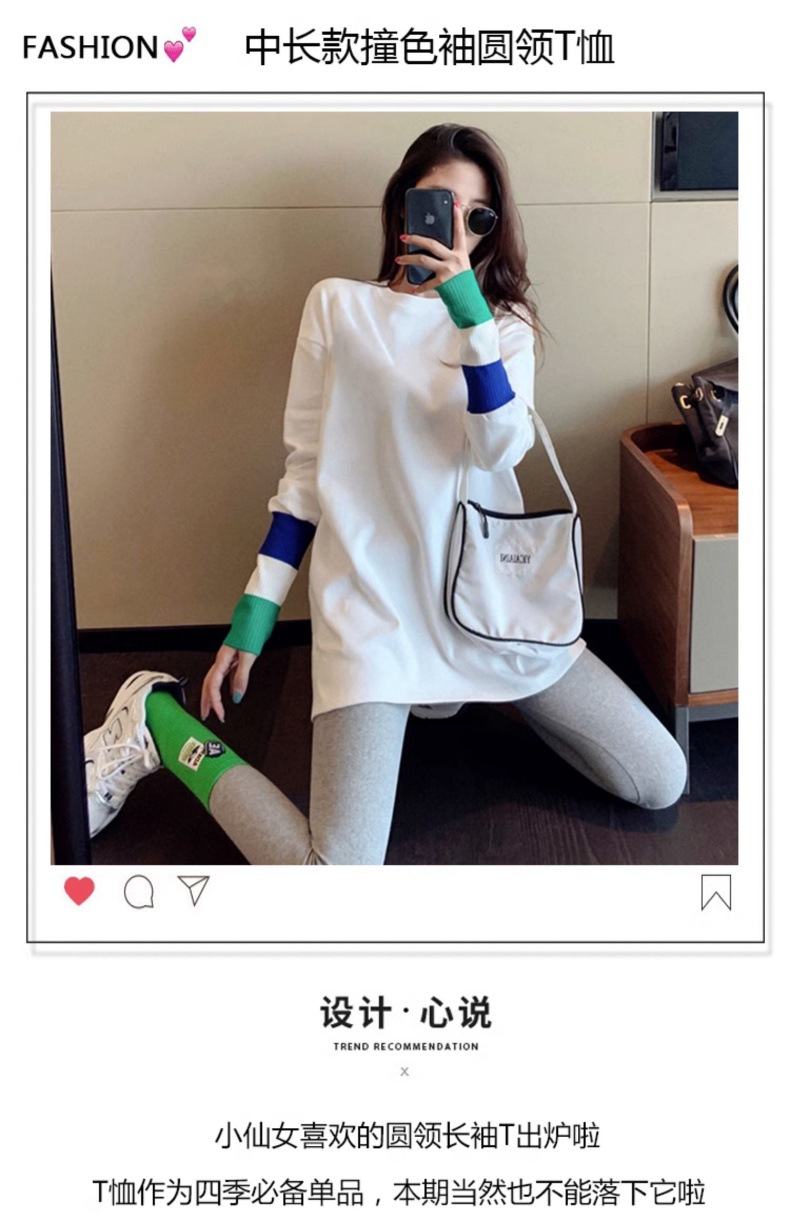 • [긴 소매 컬러 커프] 둥근 목 티셔츠 화이트