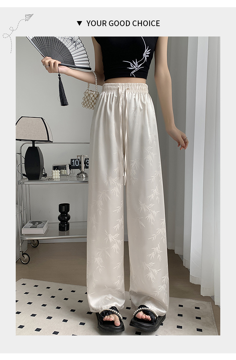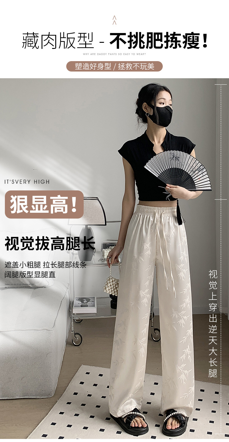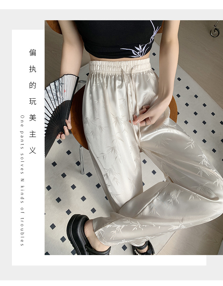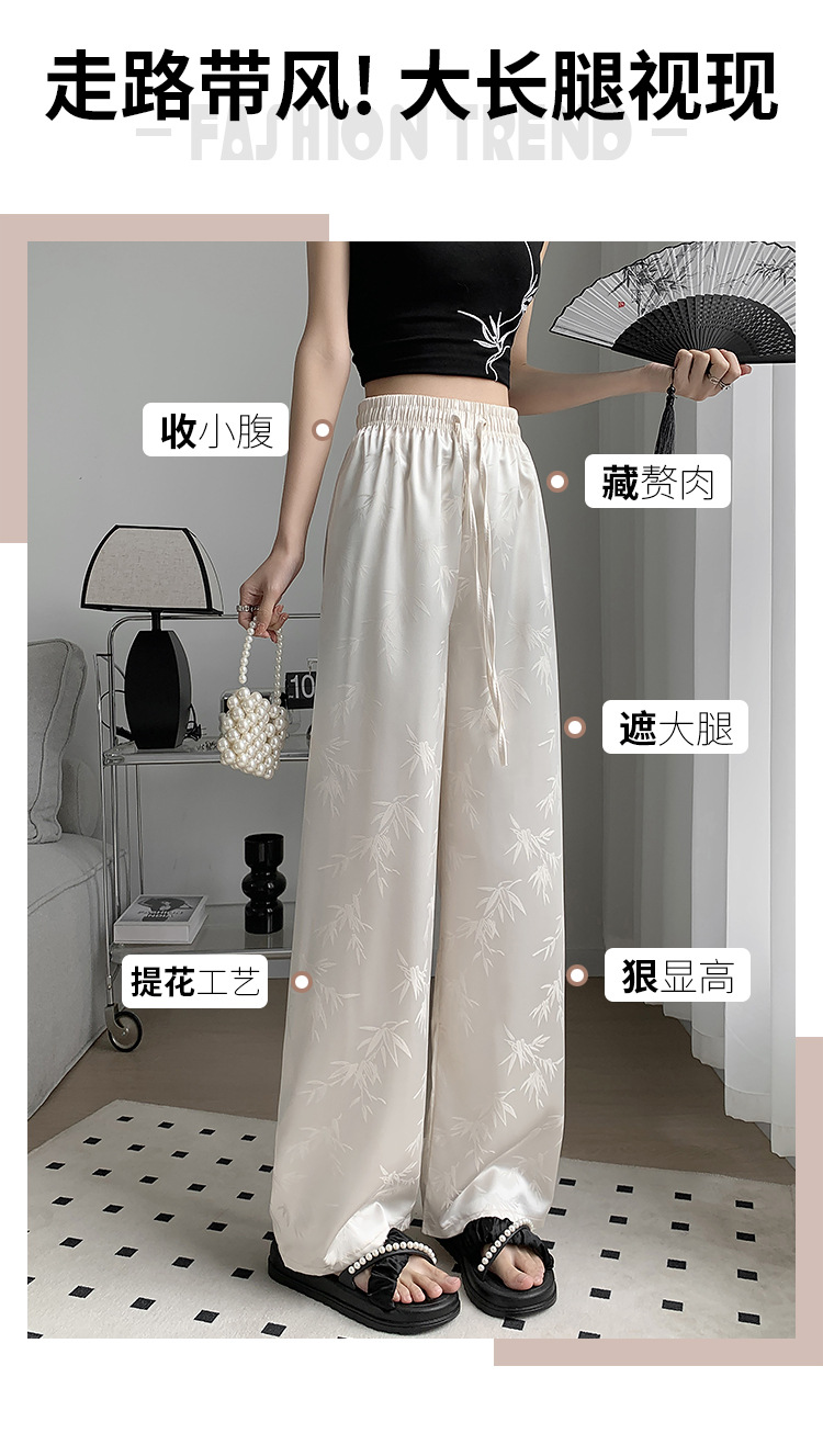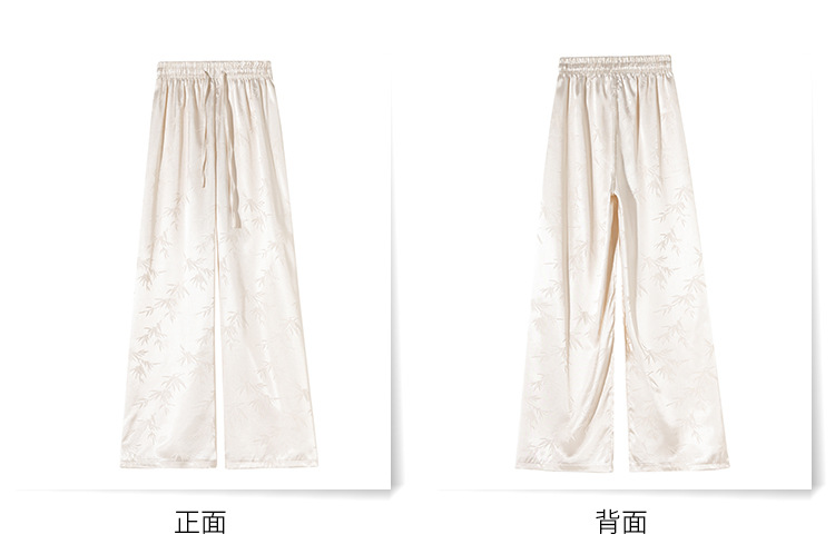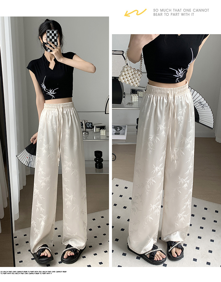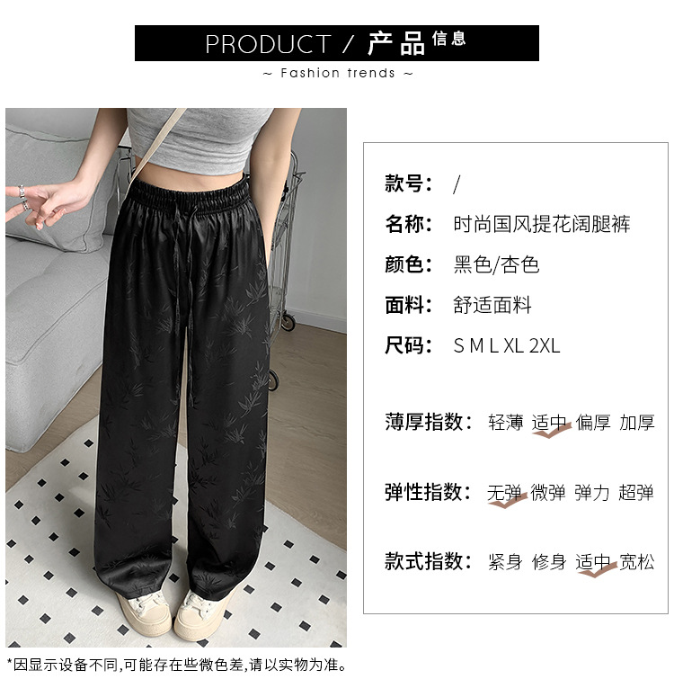 중국 스타일 자카드 와이드 레그 여성 바지 2024 봄과 여름 새로운 하이 허리 슬리밍 아이스 실크 패션 캐주얼스토어 가기