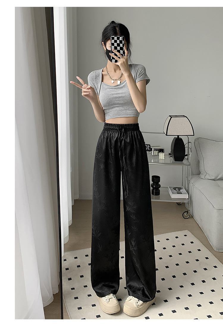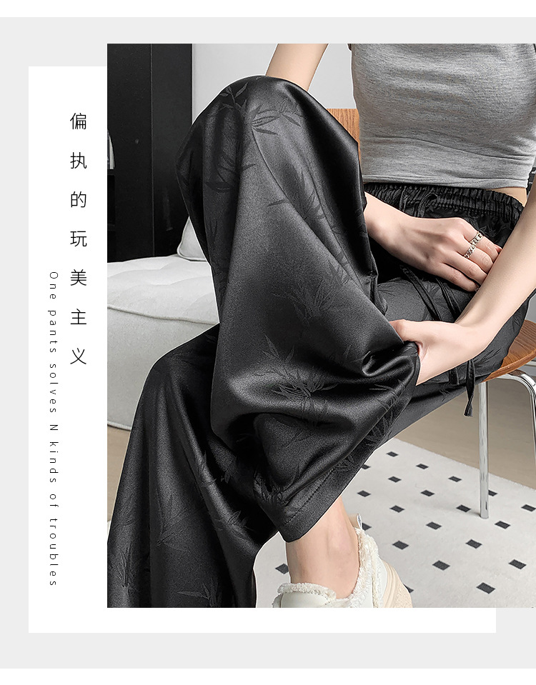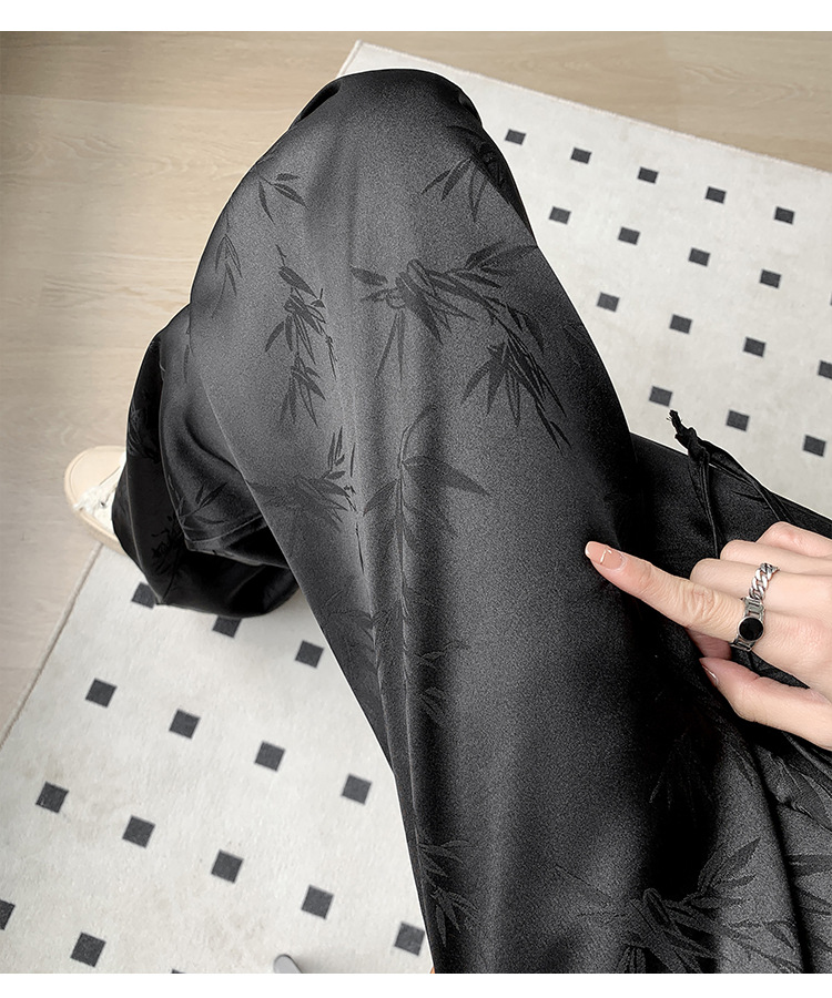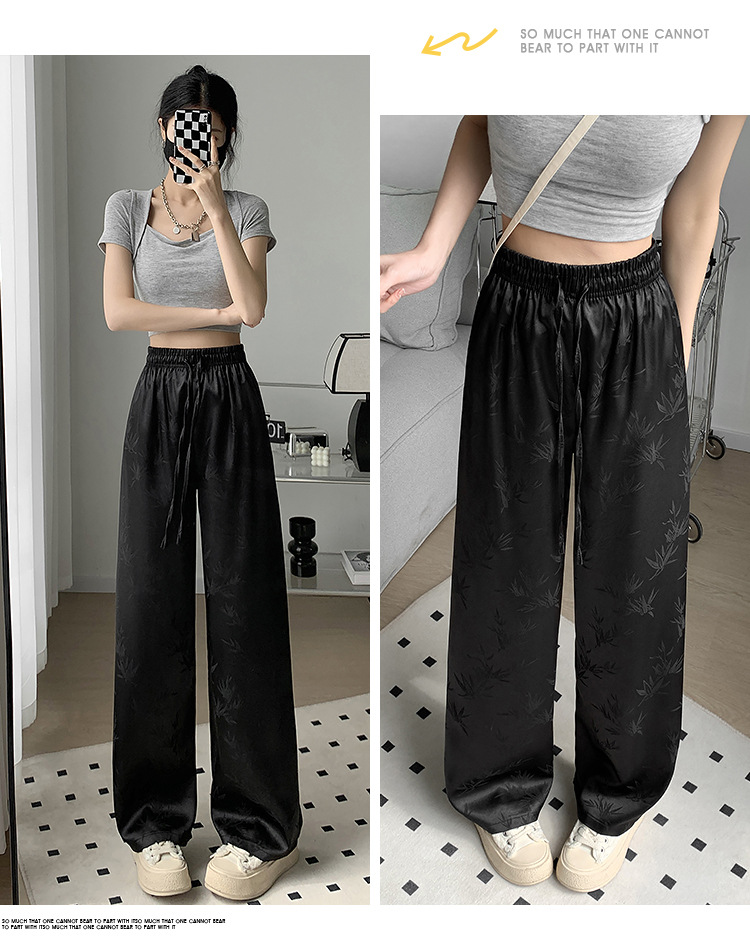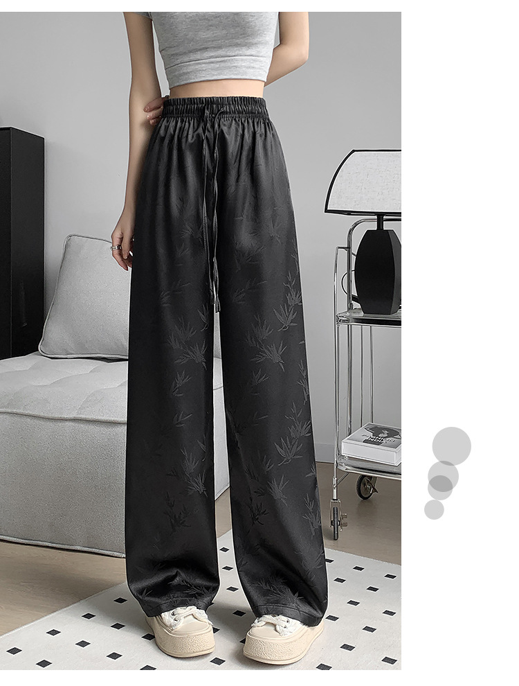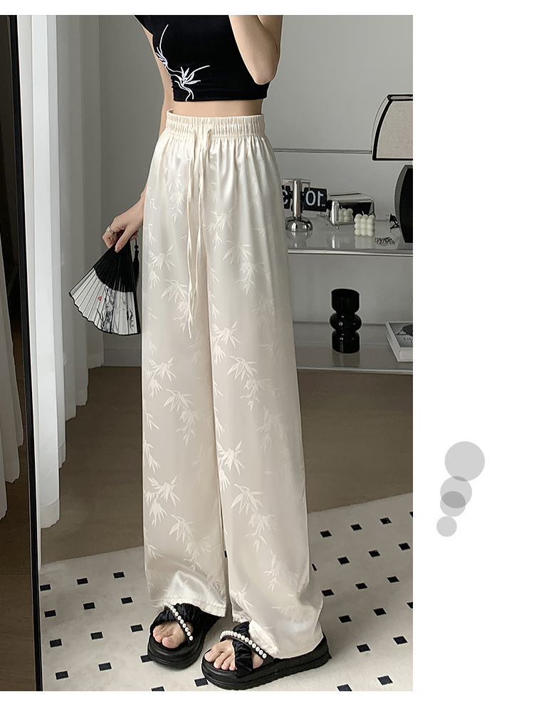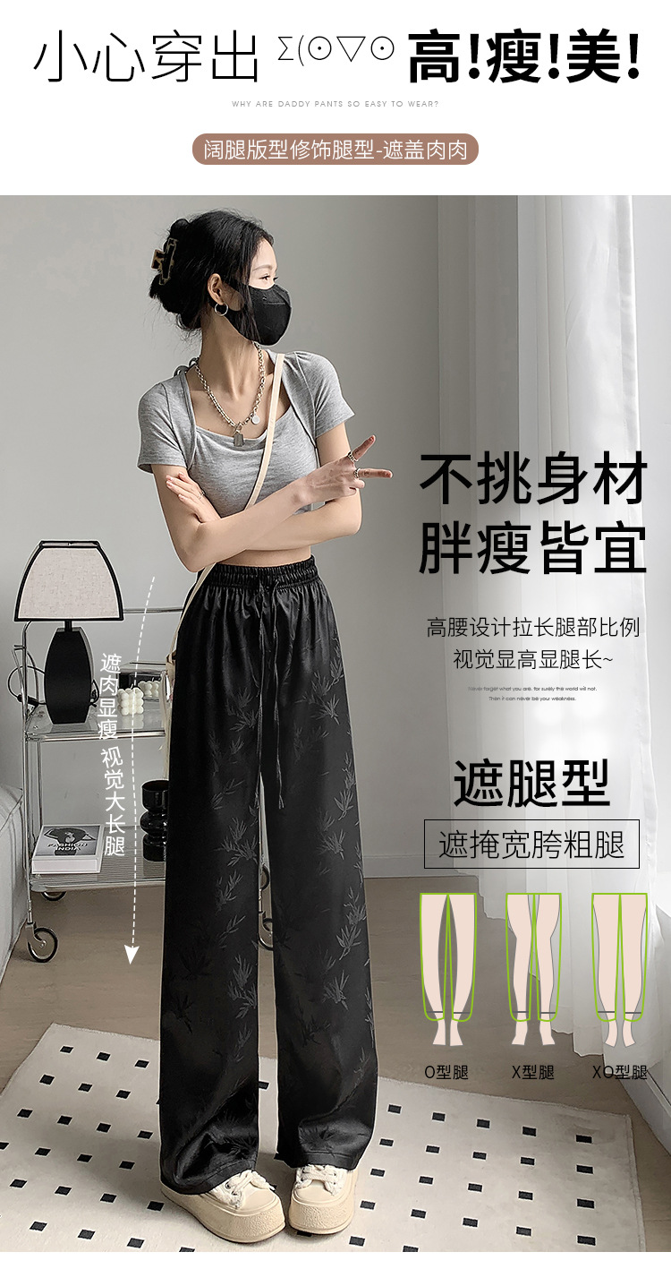 중국 스타일 자카드 와이드 레그 여성 바지 2024 봄과 여름 새로운 하이 허리 슬리밍 아이스 실크 패션 캐주얼스토어 가기