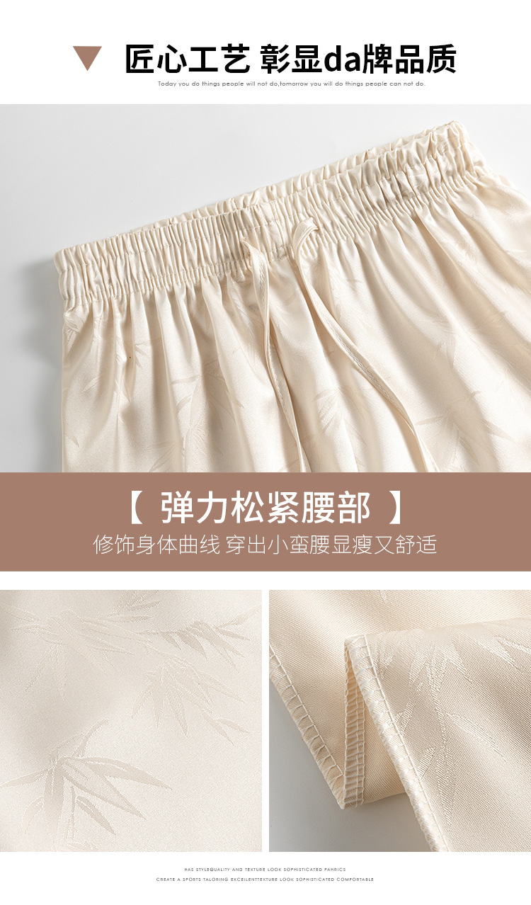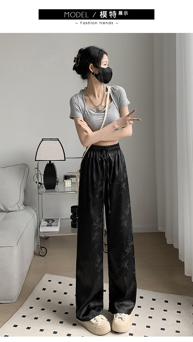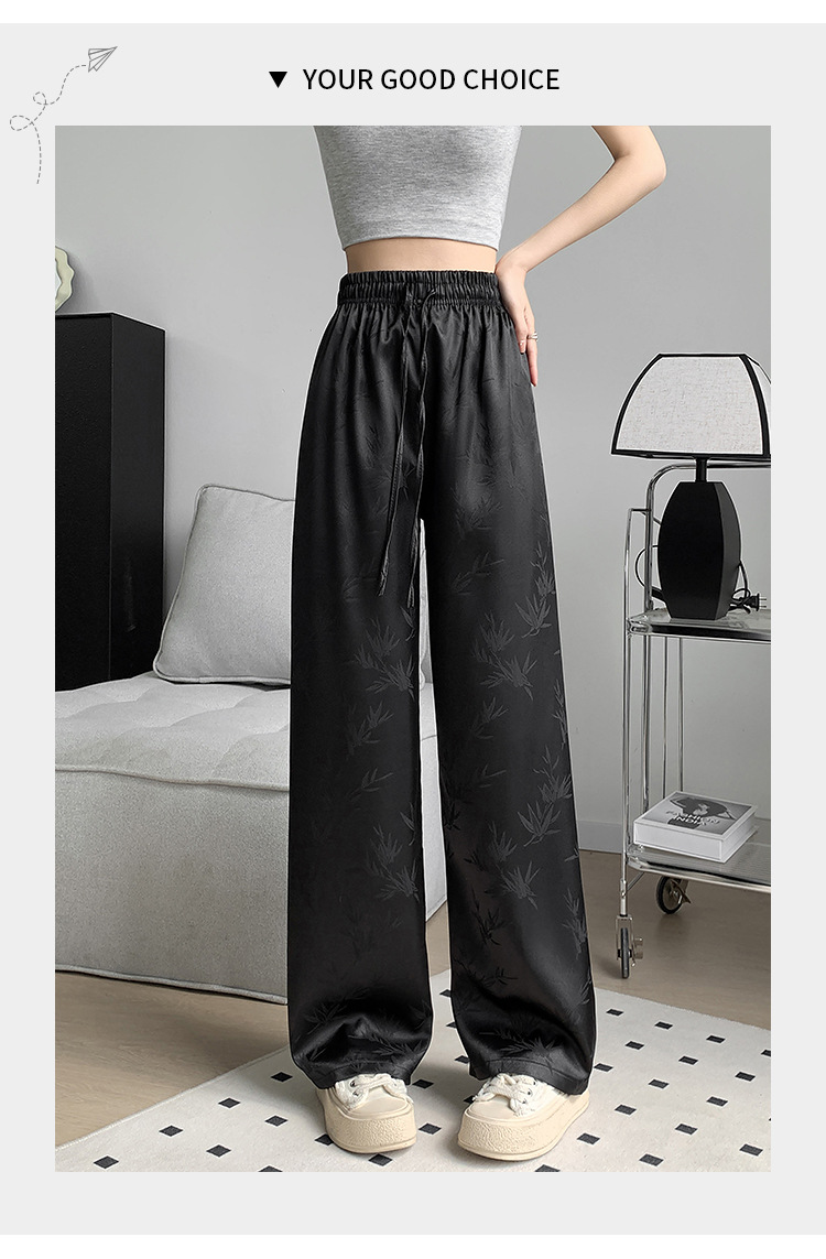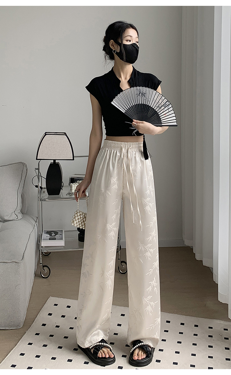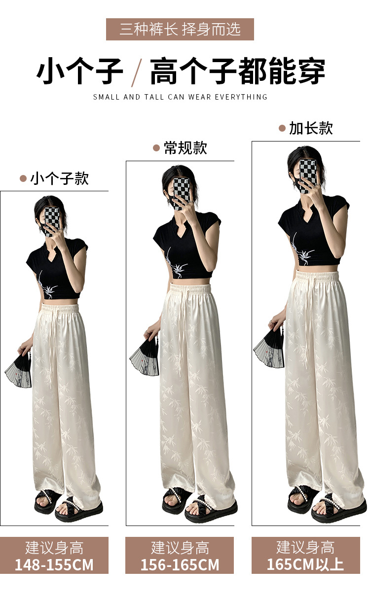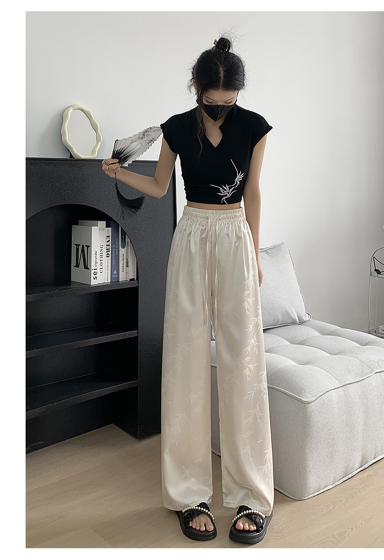 중국 스타일 자카드 와이드 레그 여성 바지 2024 봄과 여름 새로운 하이 허리 슬리밍 아이스 실크 패션 캐주얼스토어 가기