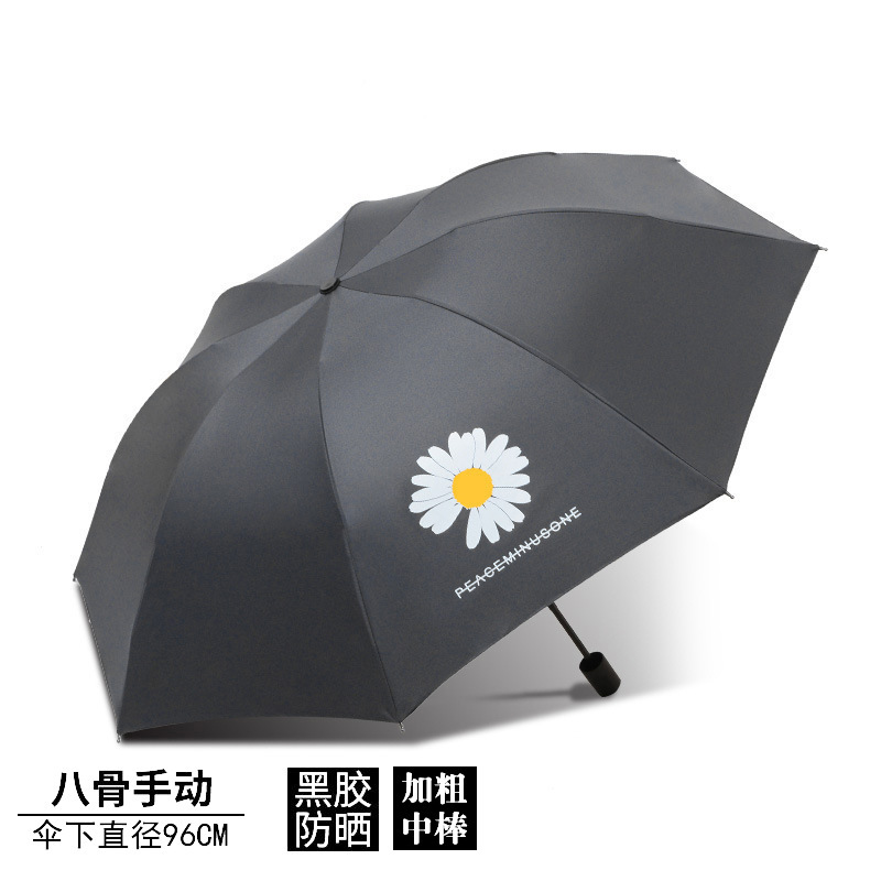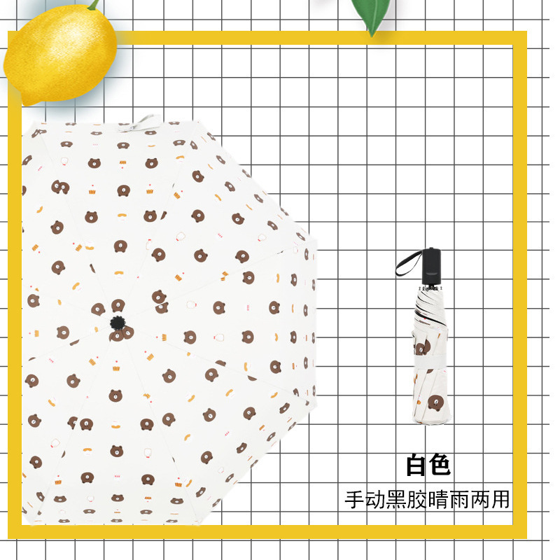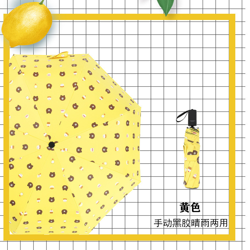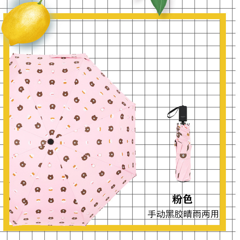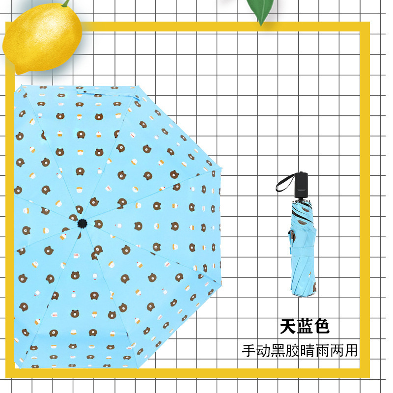 신선한 만화 전천후 우산 접는 태양 보호 UV 보호 블랙 접착제 삼중 우산 태양 헤어 유니섹스 우산
