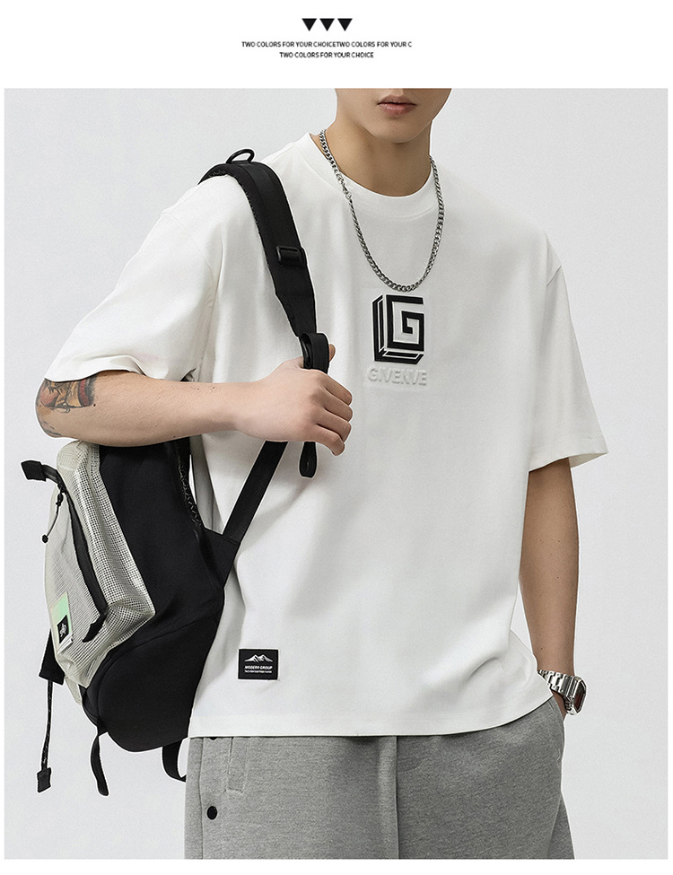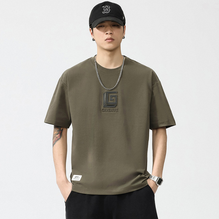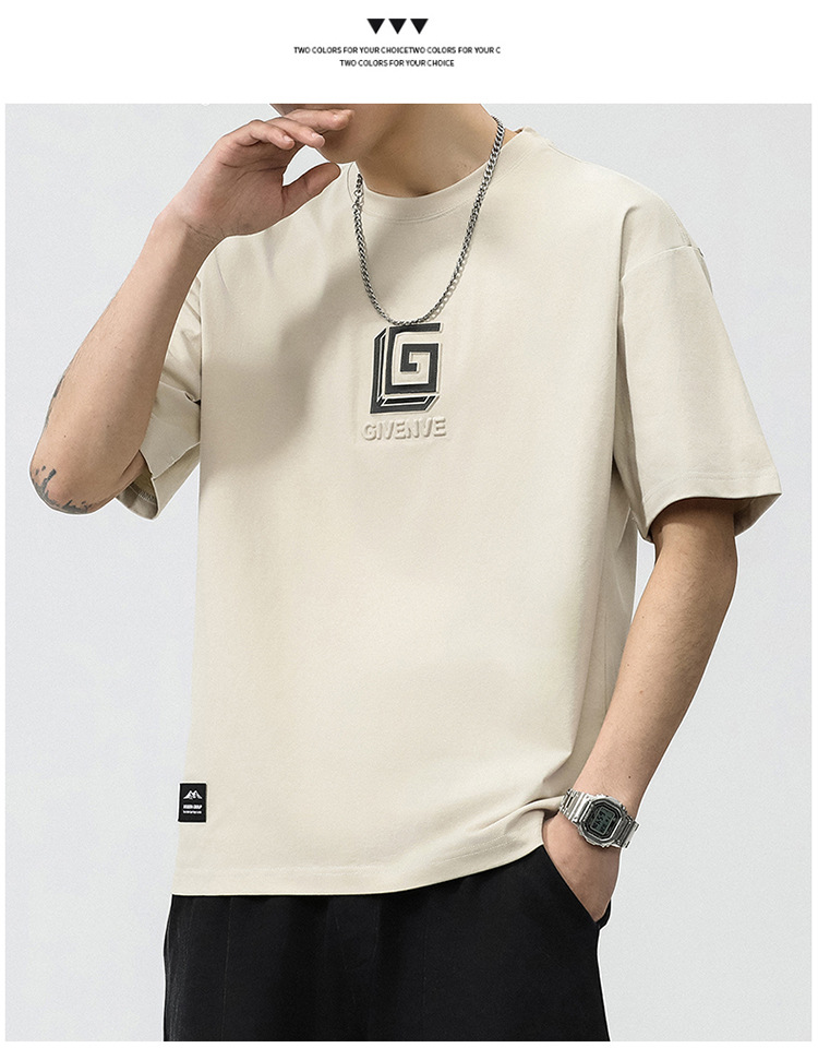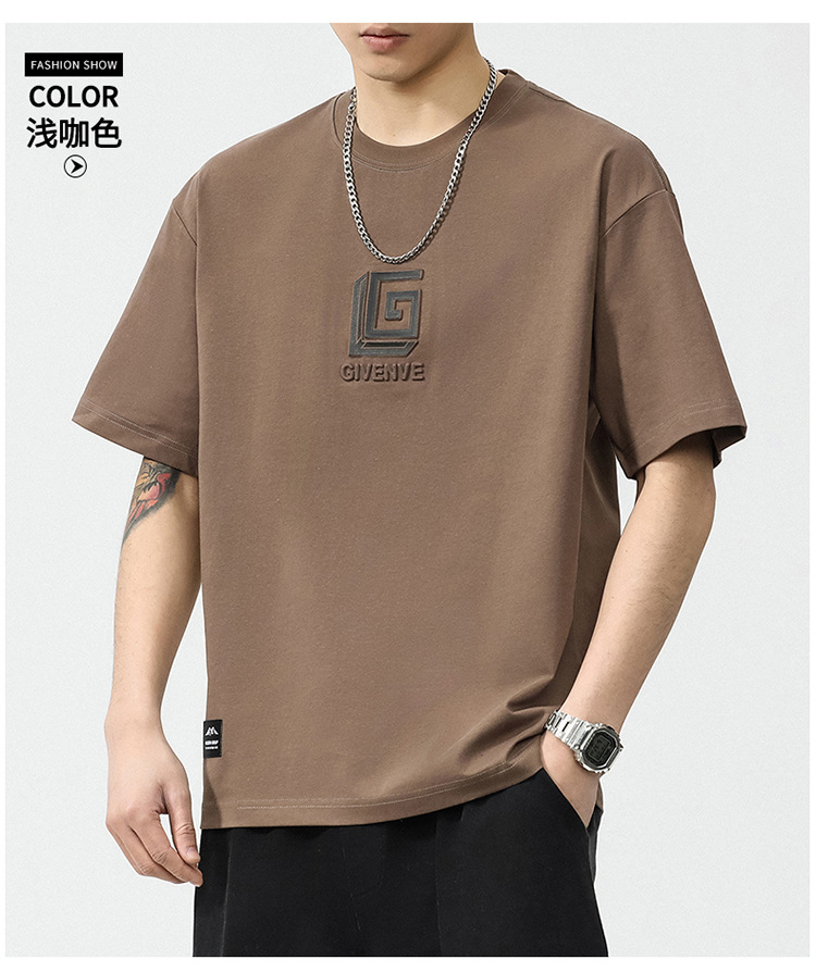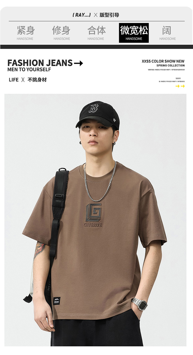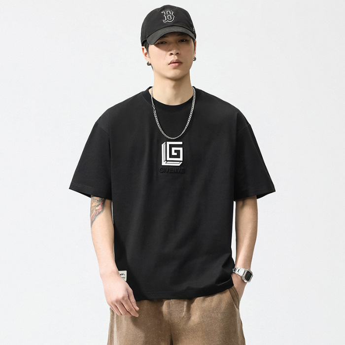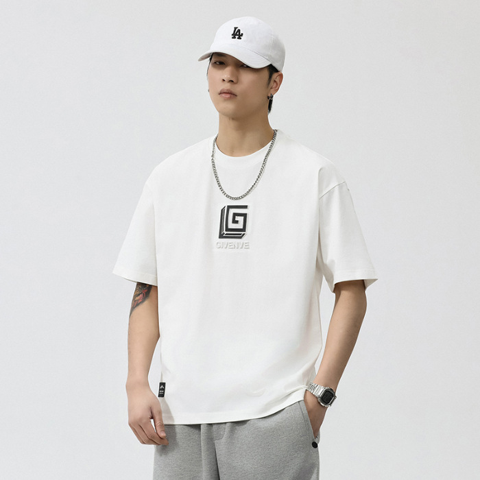 티셔츠 남성 여름 2024 새로운 패션 브랜드 프린트 티셔츠 남성용 얇은 느슨한 통기성 라운드 넥 드롭 숄더 짧은 소매 남성스토어 가기