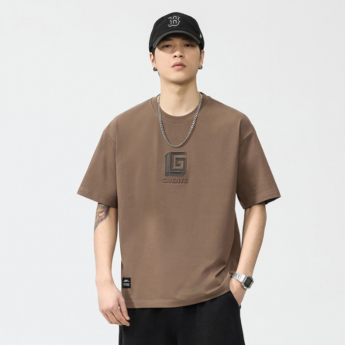 티셔츠 남성 여름 2024 새로운 패션 브랜드 프린트 티셔츠 남성용 얇은 느슨한 통기성 라운드 넥 드롭 숄더 짧은 소매 남성