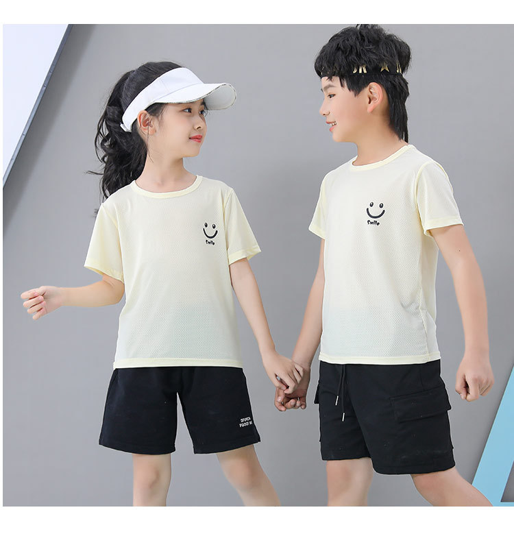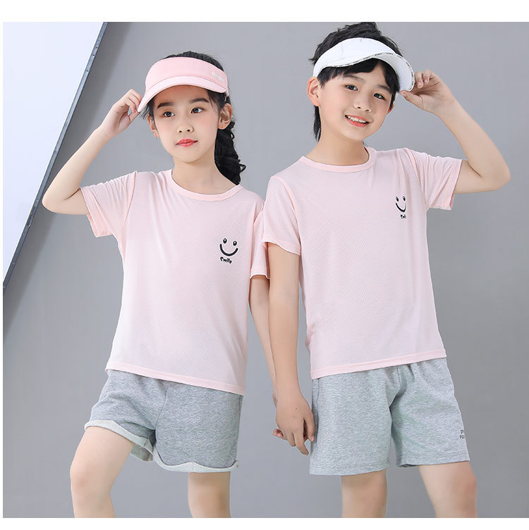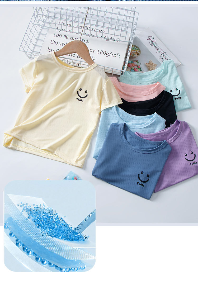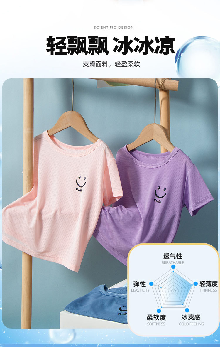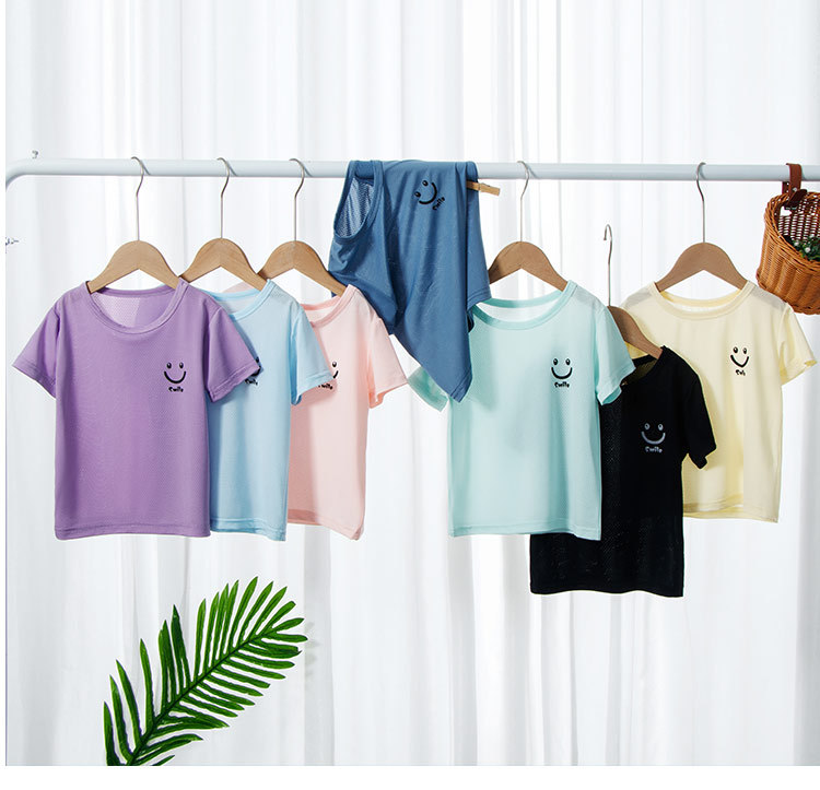어린이 아이스 실크 반팔 퀵 드라이 티셔츠 소년 소녀 얇은 메쉬 캐주얼 탑 라운드 넥 셔츠 아동복 여름 A스토어 가기