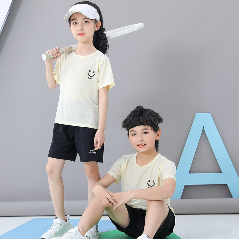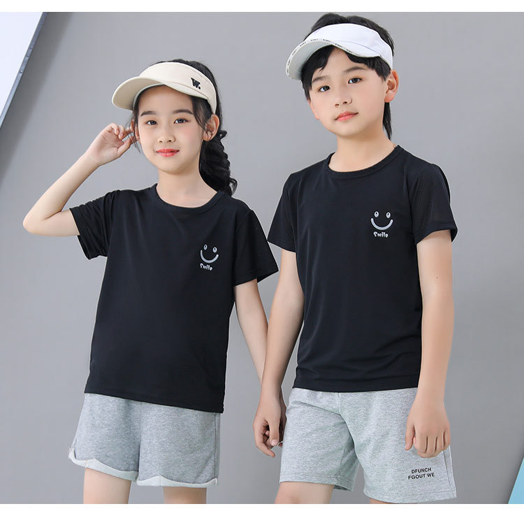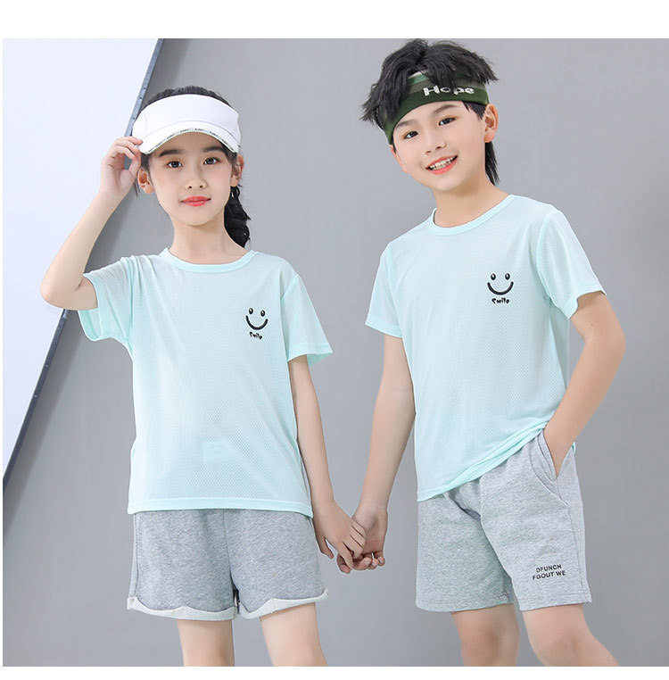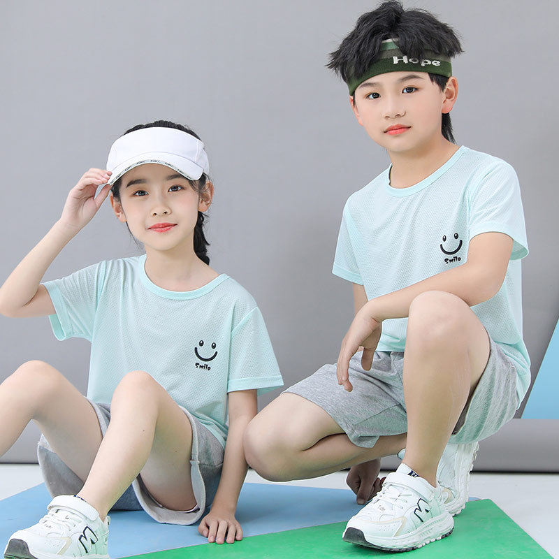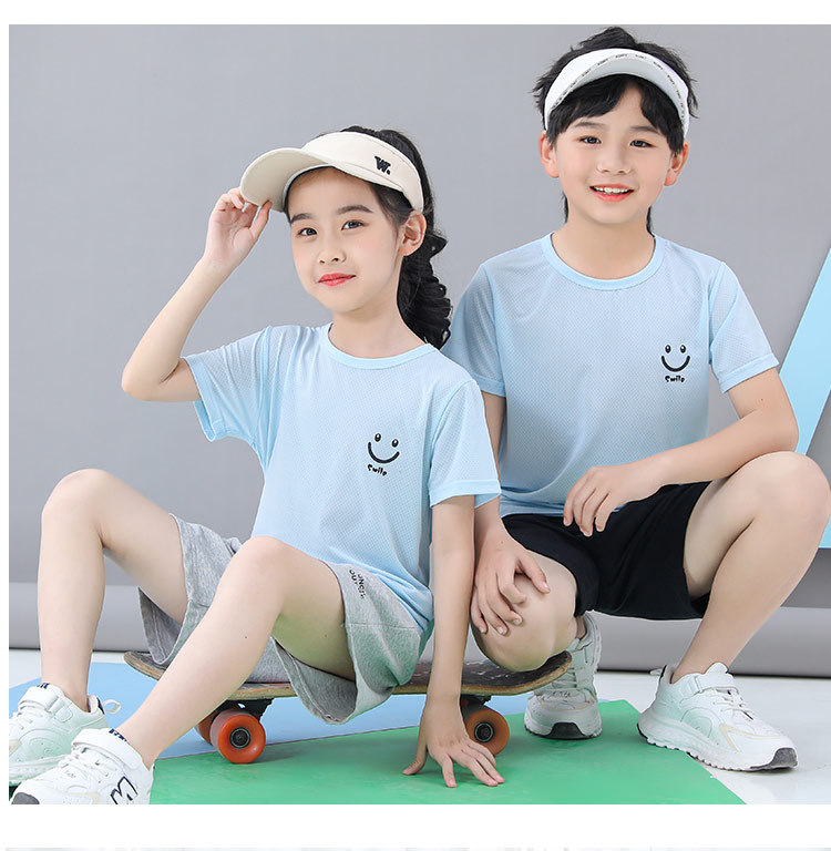 어린이 아이스 실크 반팔 퀵 드라이 티셔츠 소년 소녀 얇은 메쉬 캐주얼 탑 라운드 넥 셔츠 아동복 여름 A스토어 가기
