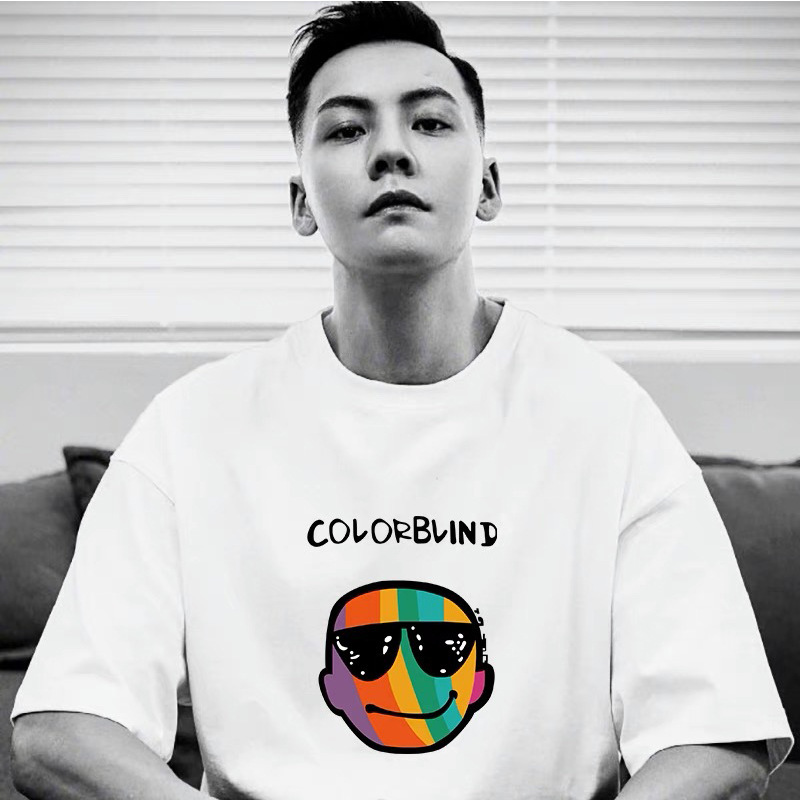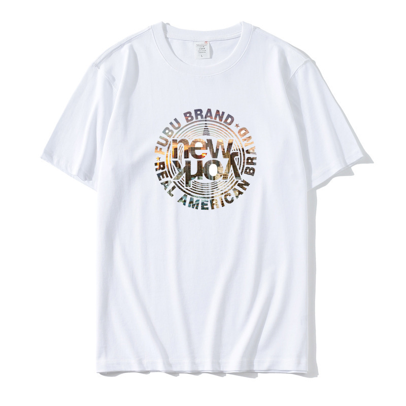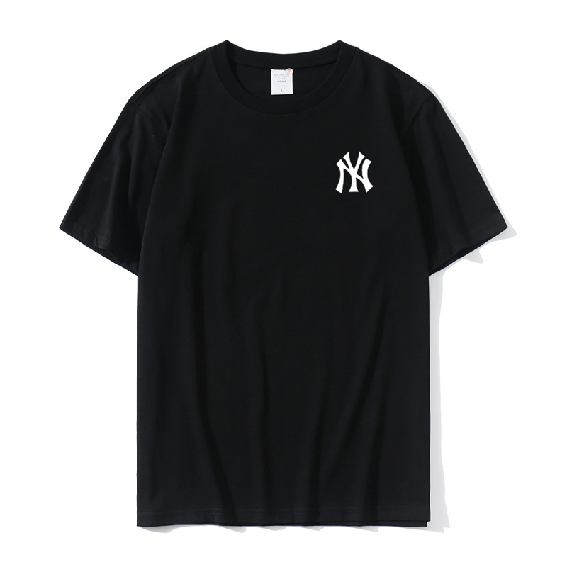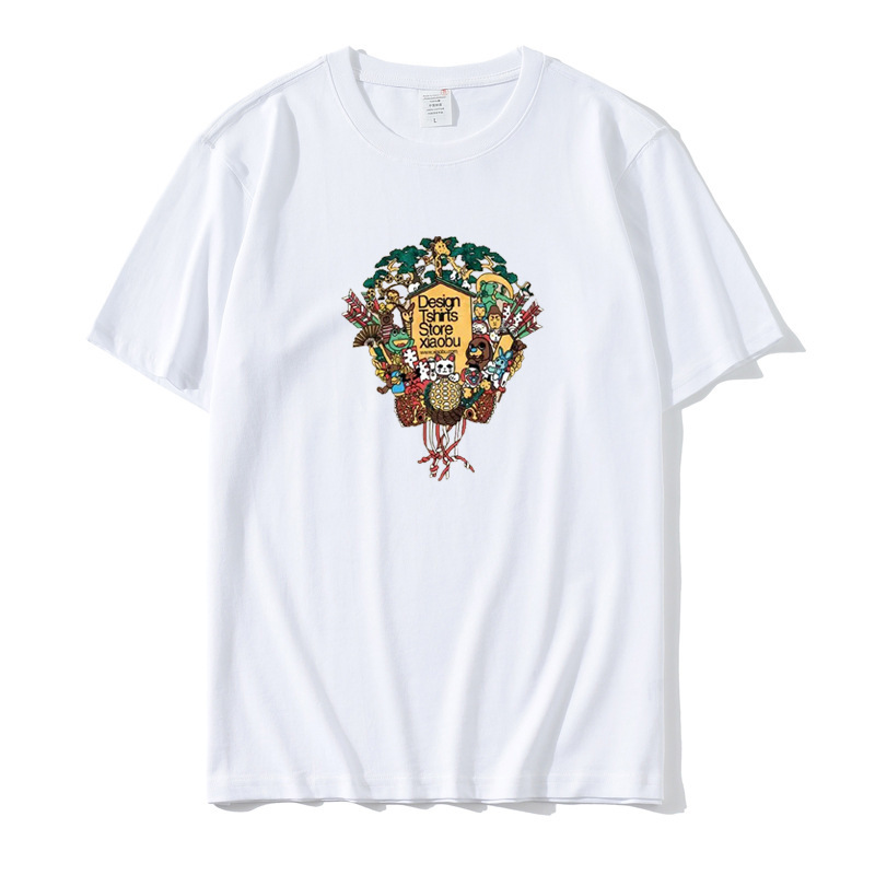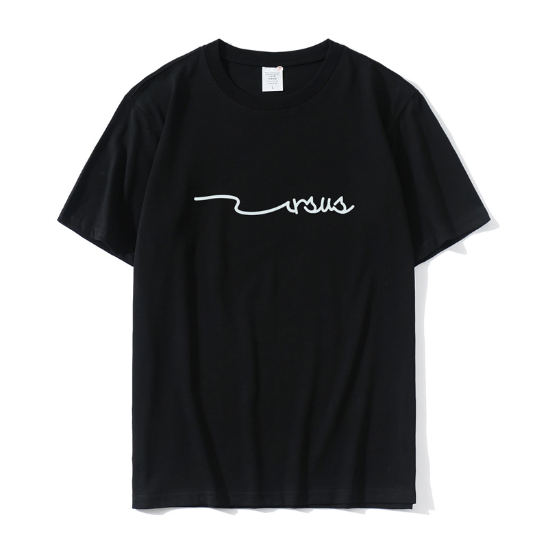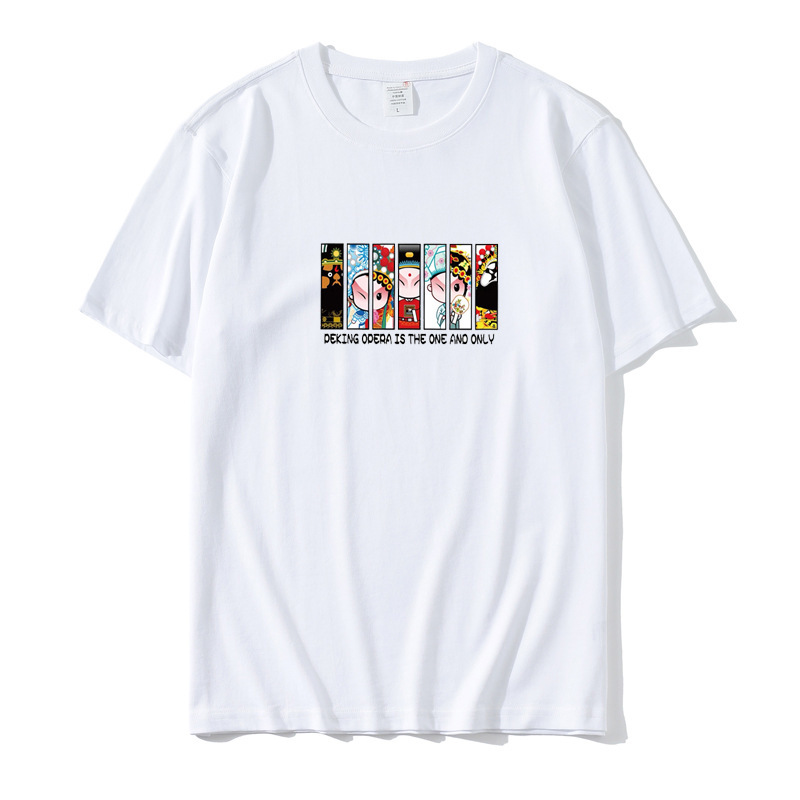 2023 Yu Wenle 반소매 패션 브랜드 남성용 간단한 웃는 얼굴 블랙 티셔츠 남성용 둥근 목 프린트 느슨한 반소매 여름