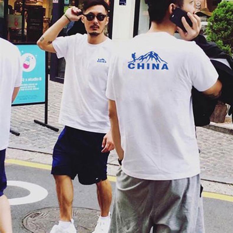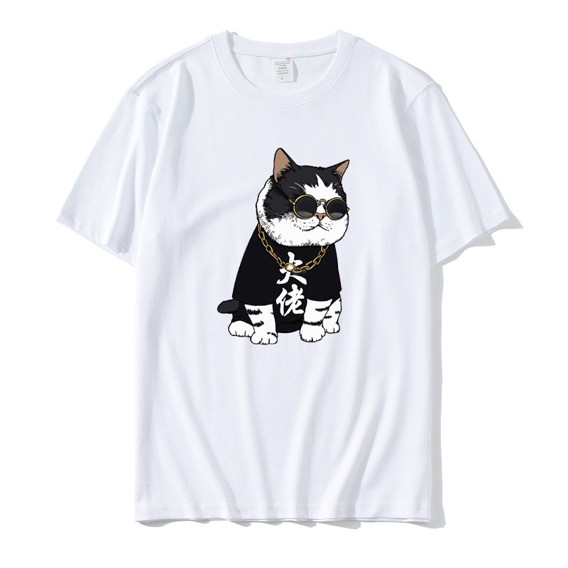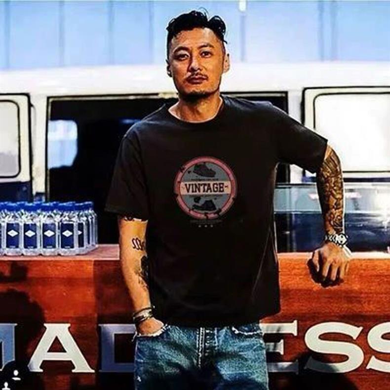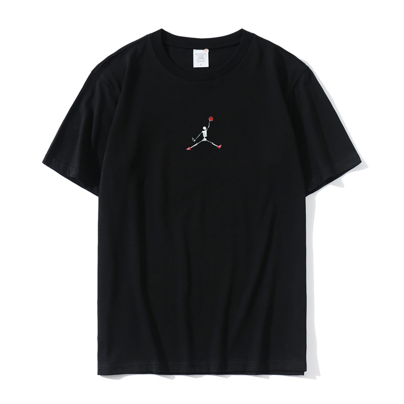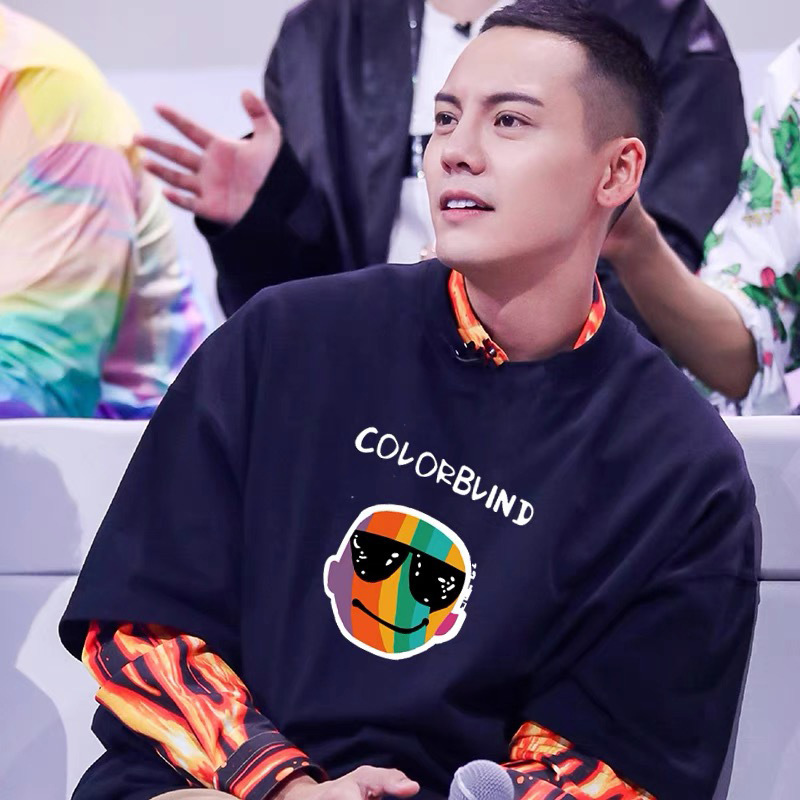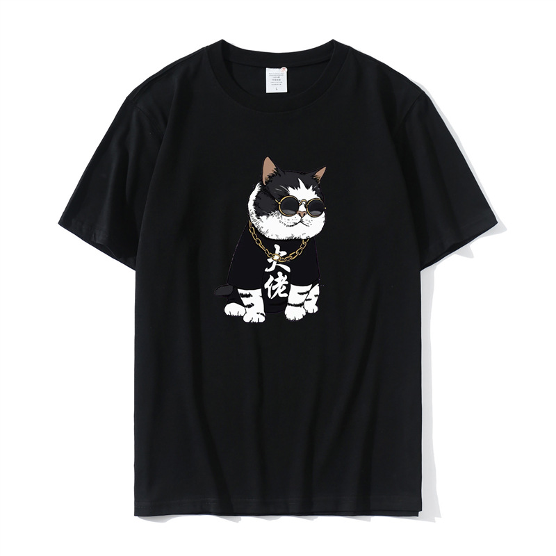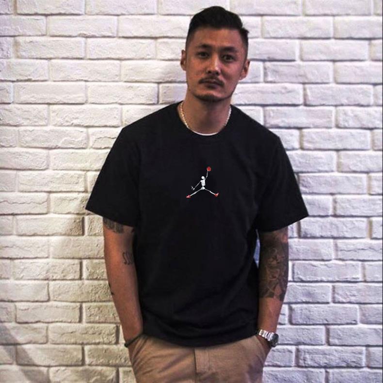 2023 Yu Wenle 반소매 패션 브랜드 남성용 간단한 웃는 얼굴 블랙 티셔츠 남성용 둥근 목 프린트 느슨한 반소매 여름