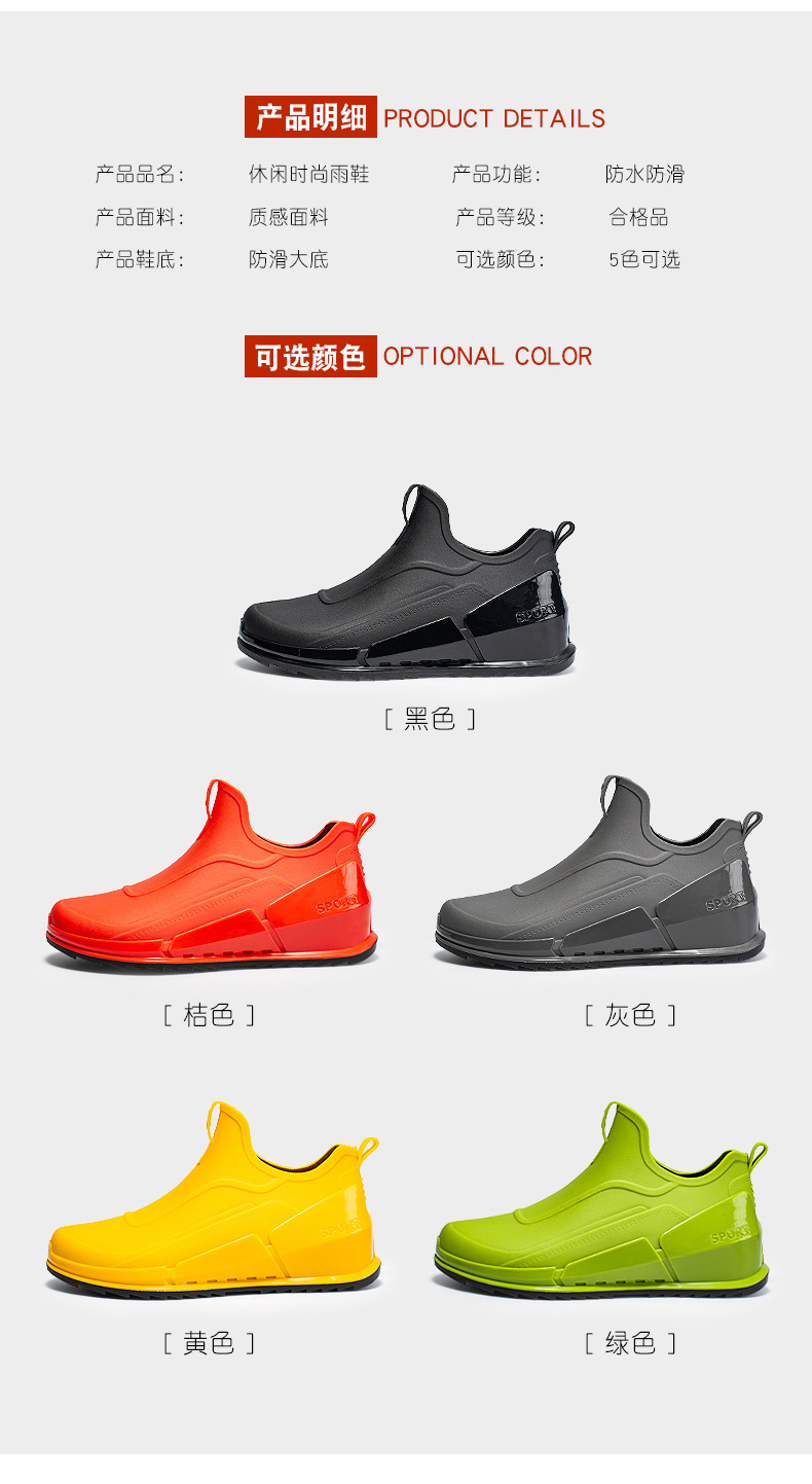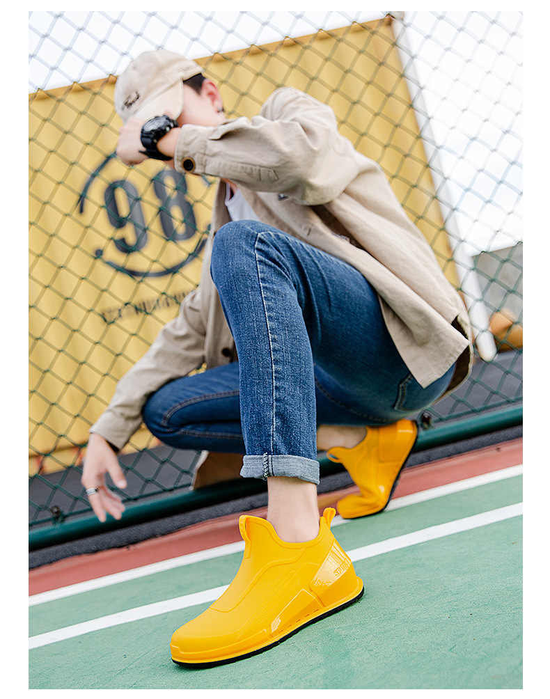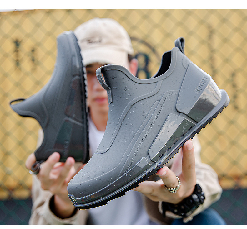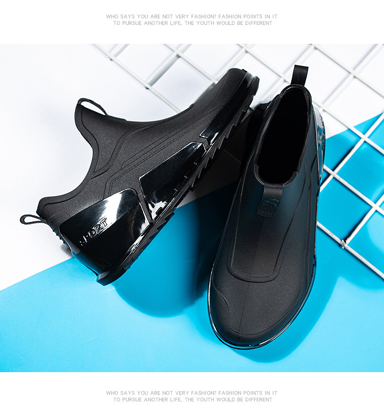 국경을 넘는 인기 신상 패션 레인부츠 남성용 숏컷 미끄럼 방지 로우탑 레인부츠 방수 고무신 여름 숏 워터부츠