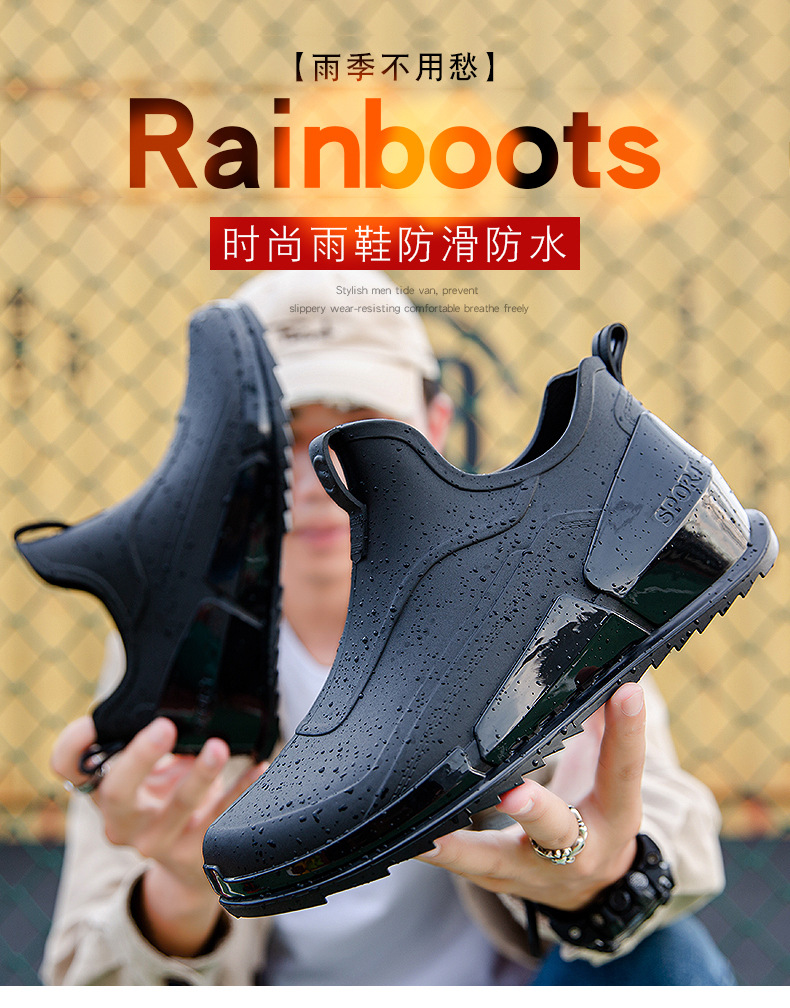 국경을 넘는 인기 신상 패션 레인부츠 남성용 숏컷 미끄럼 방지 로우탑 레인부츠 방수 고무신 여름 숏 워터부츠스토어 가기