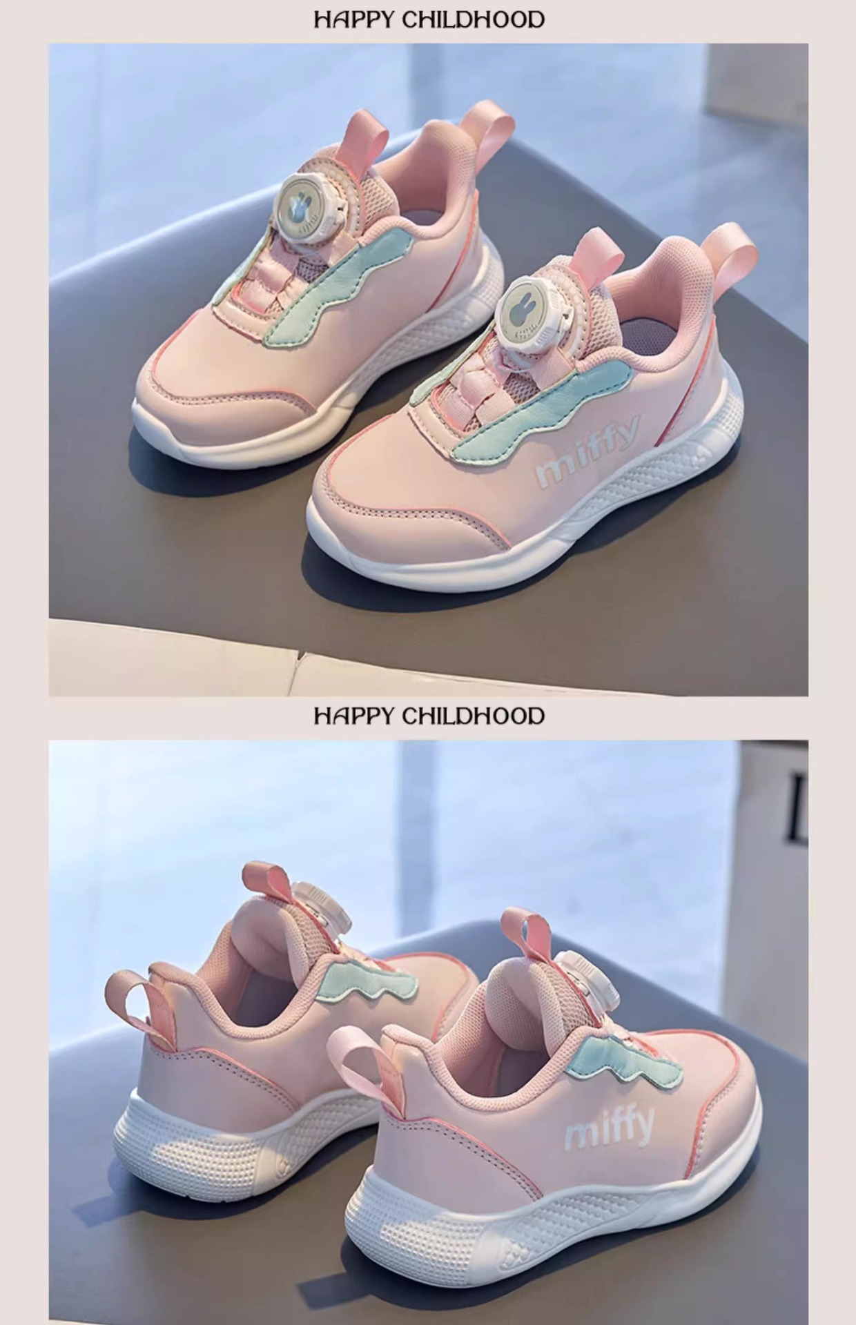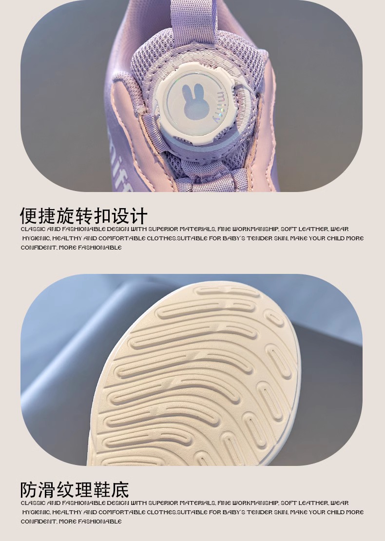 미피 미피 어린이 신발 2024 봄 새 소녀 운동화 가죽 방수 레이스없는 흰색 신발 운동화