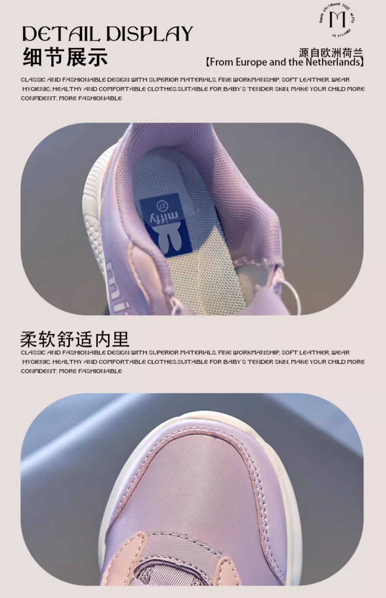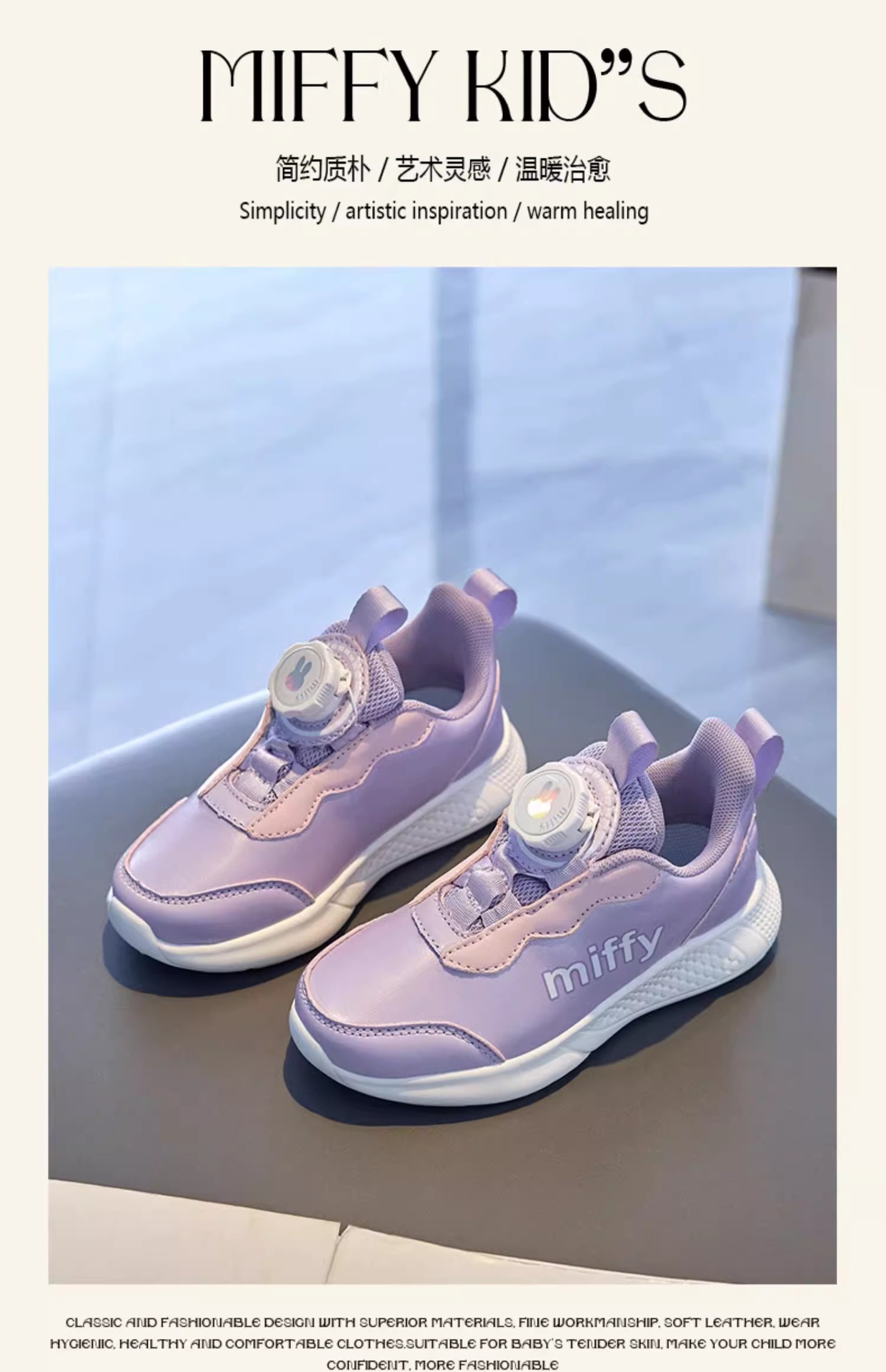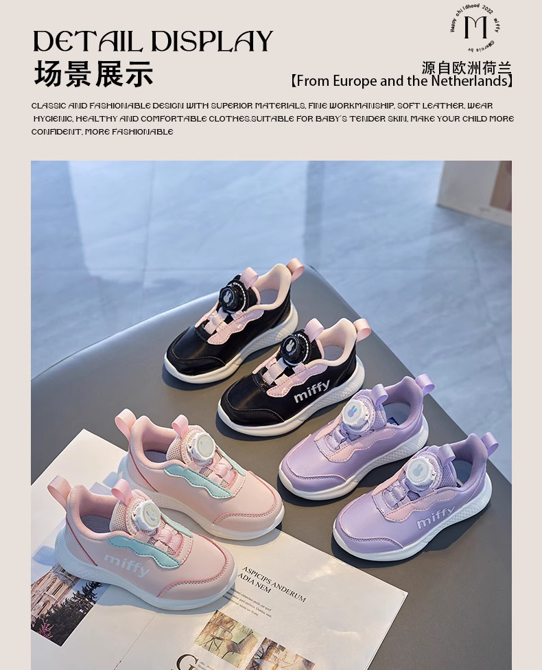 미피 미피 어린이 신발 2024 봄 새 소녀 운동화 가죽 방수 레이스없는 흰색 신발 운동화스토어 가기