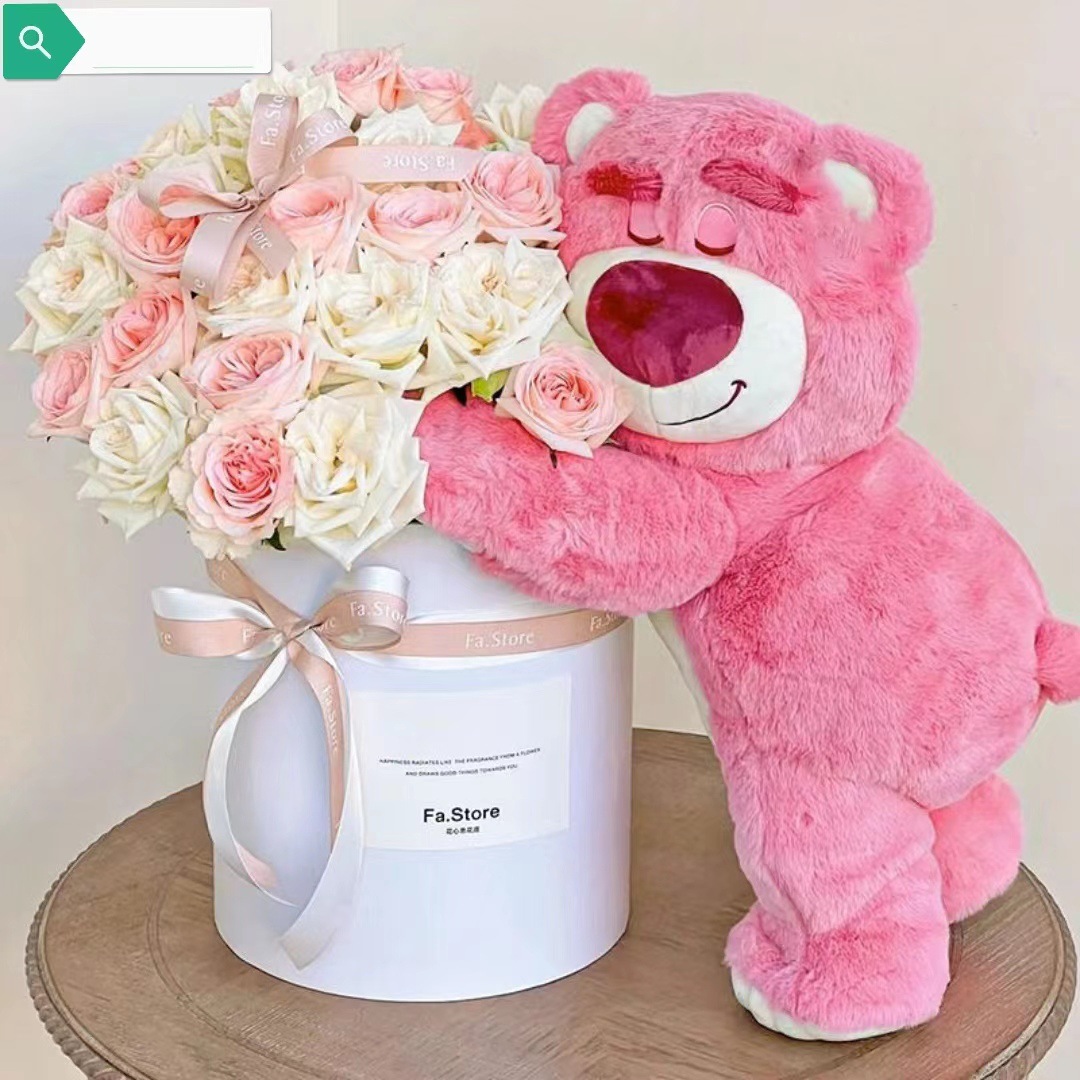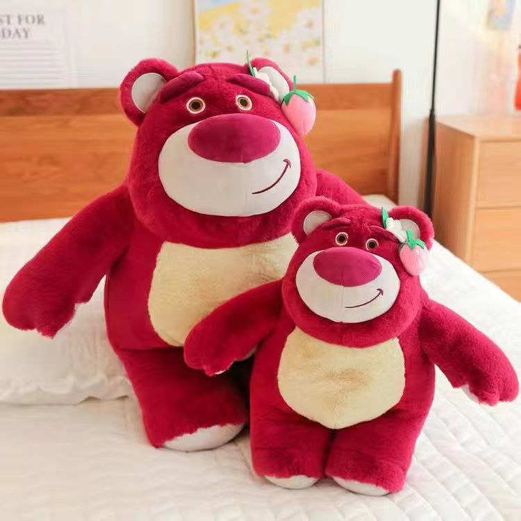 인기있는 귀여운 거짓말 딸기 곰 핑크 곰 인형 베개 봉제 장난감 부드러운 인형 선물 도매스토어 가기