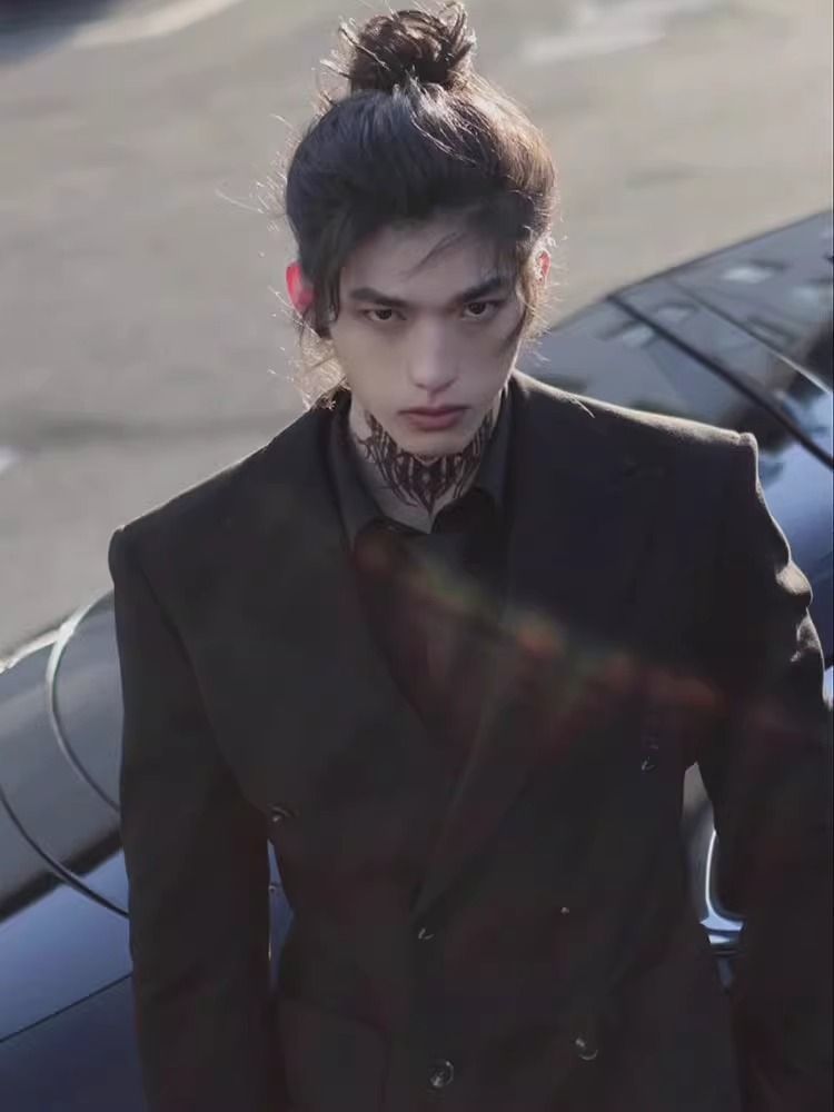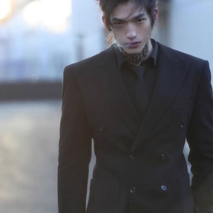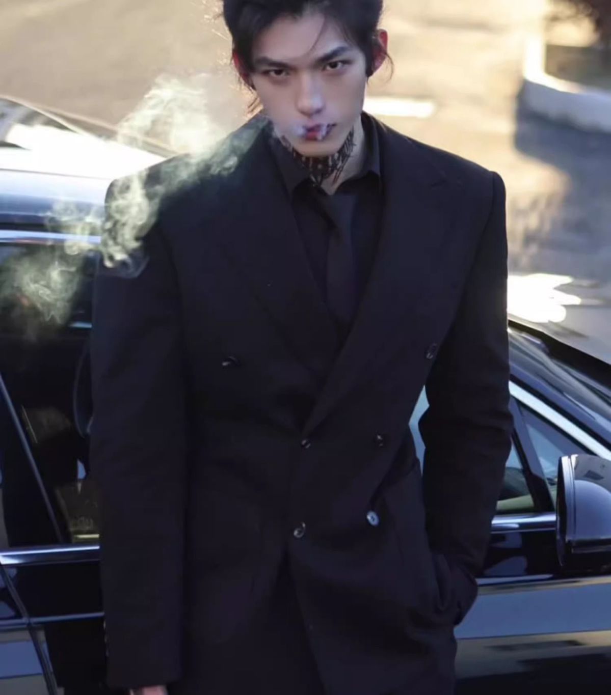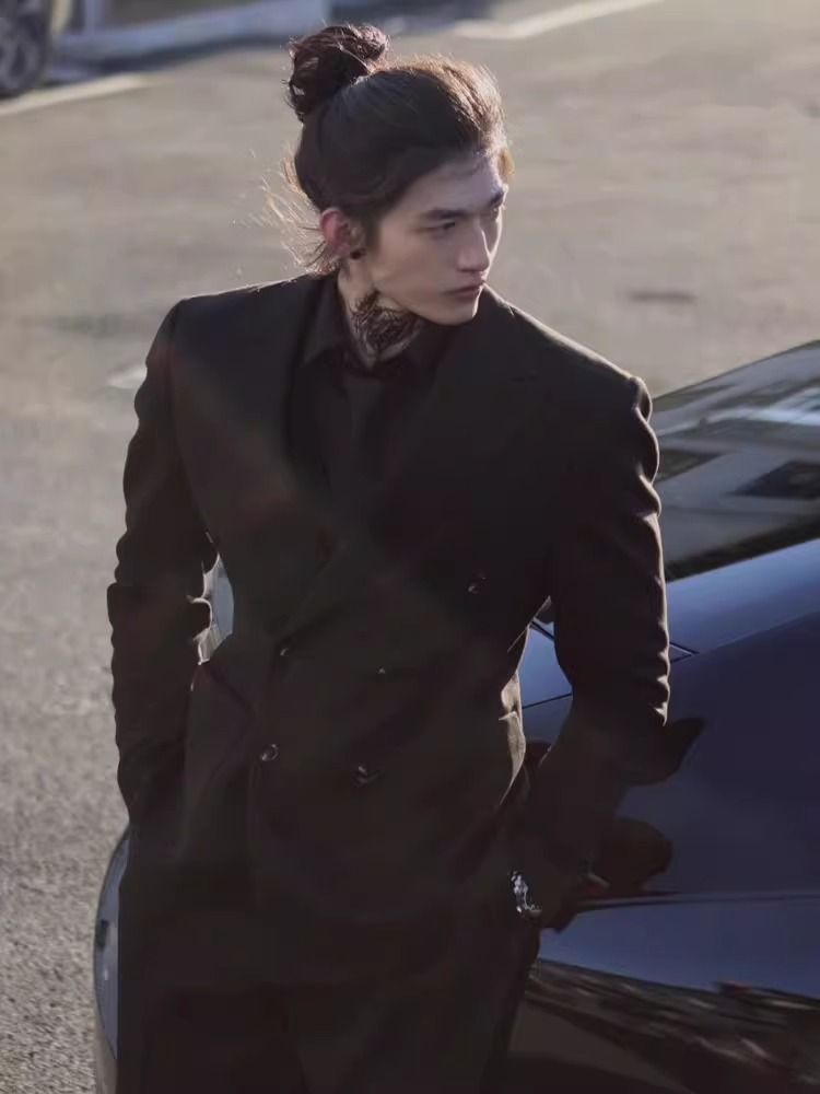 봄과 가을 사업 남자 고급 어깨 패드 잘 생긴 블랙 세트 재킷 남자 더블 브레스트 세트 풀 세트 남성복스토어 가기