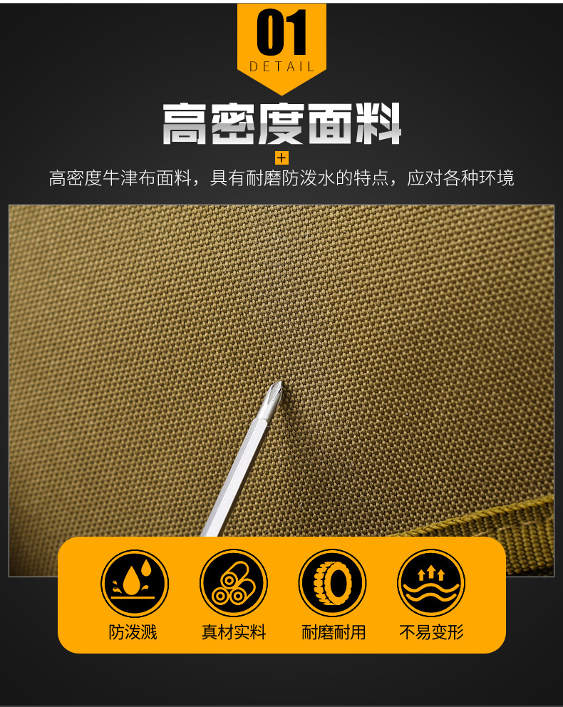 【产品材质】涤纶+加密牛津布 涂PVC 防水
