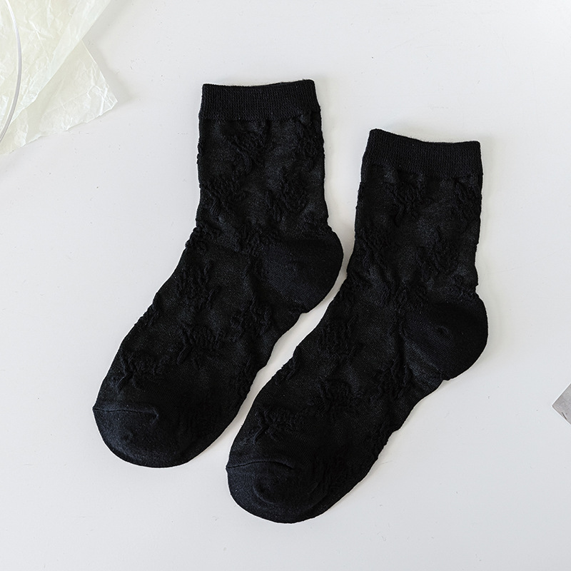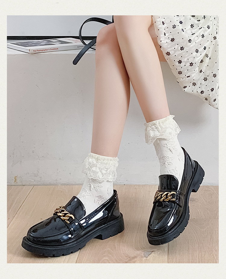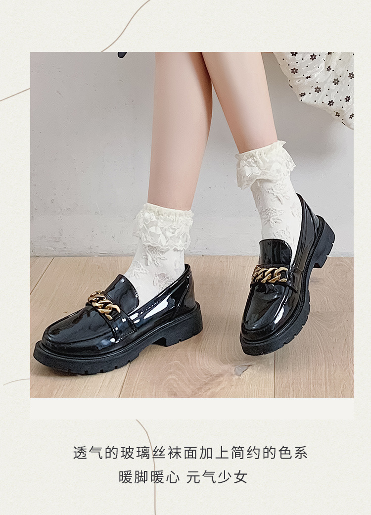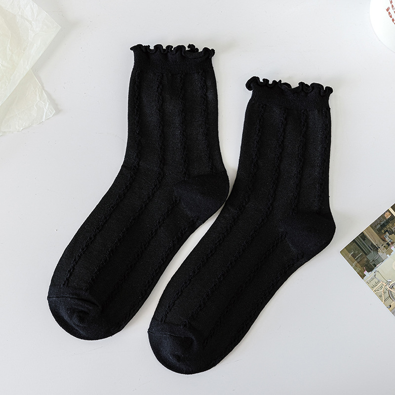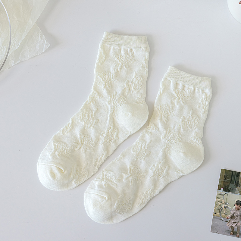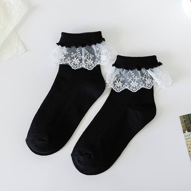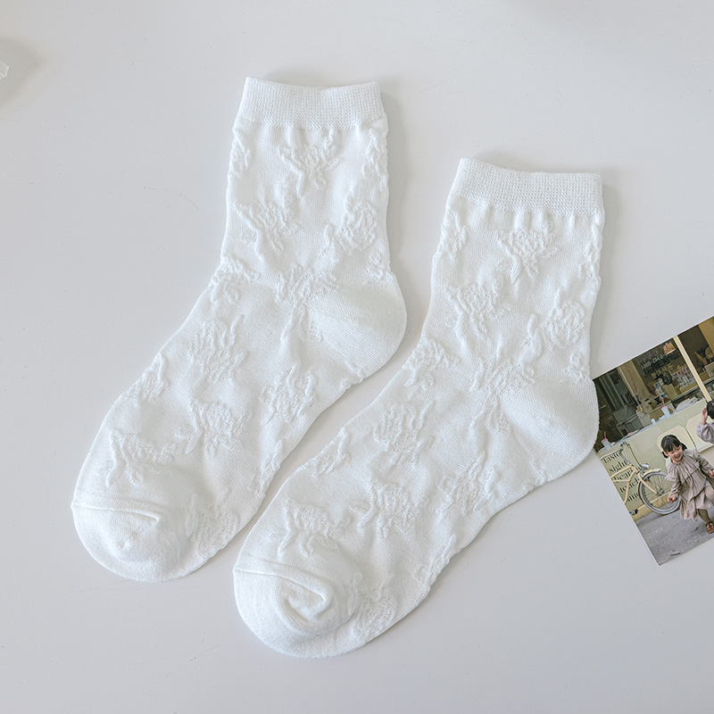 양말 여성의 중간 종아리 길이 양말 레이스 귀여운 레이스 가장자리 Lolita 얇은 흰색 Lolita 활 일본 양말