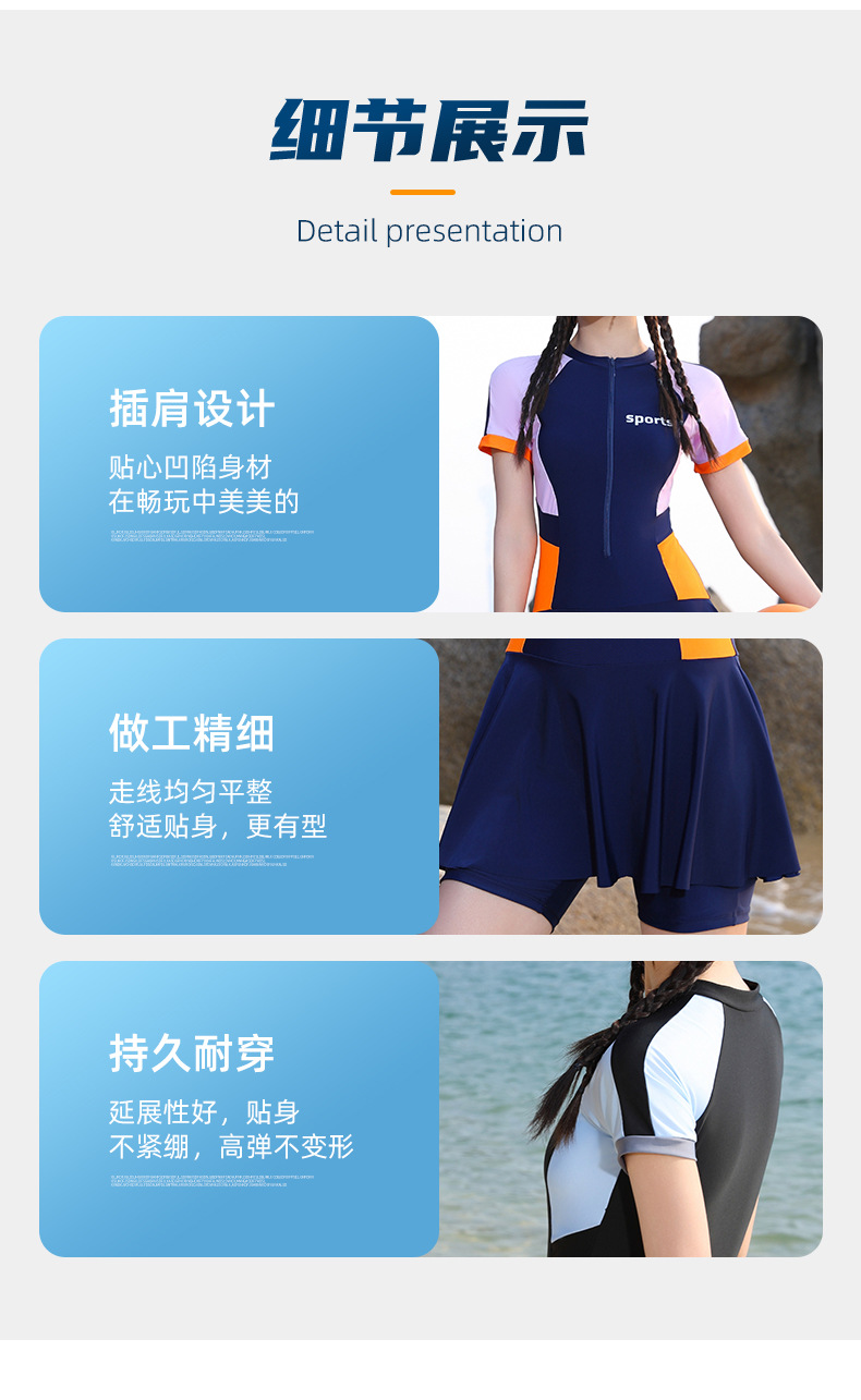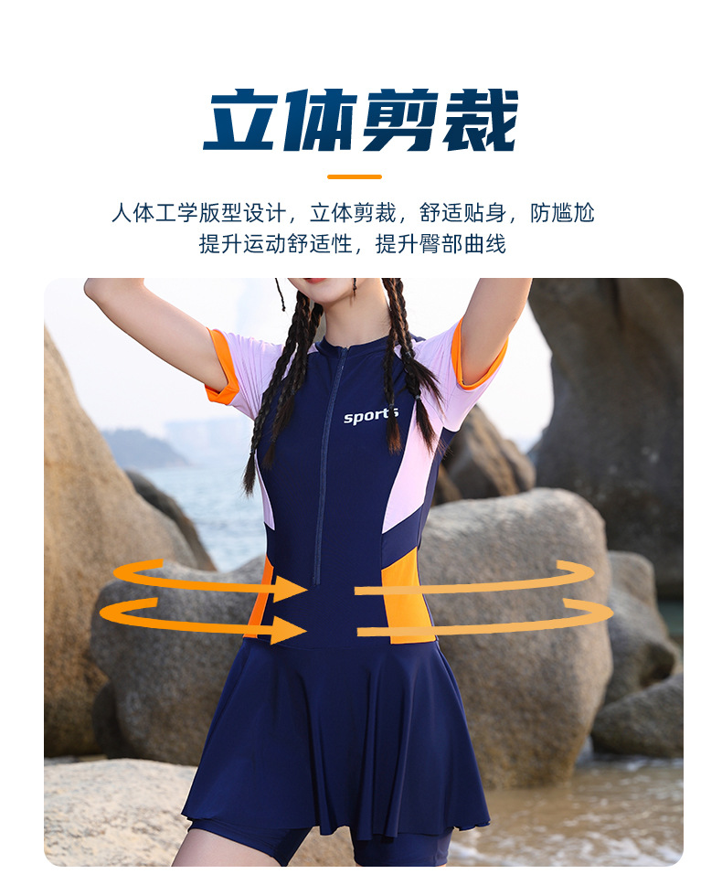여성용 퀵 드라이 수영복 하이 엔드 컬러 매칭 쇼트 지퍼 스커트 수영복 슬림핏 허리 폭발성 수영복