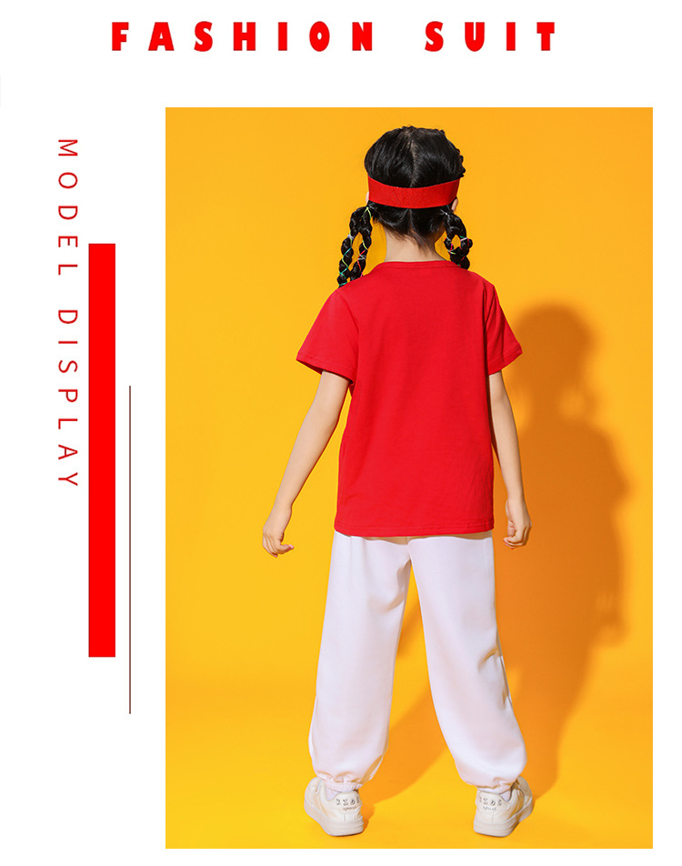 • 204 사랑 중국-빨간색 반팔 흰색 레깅스 (머리띠)