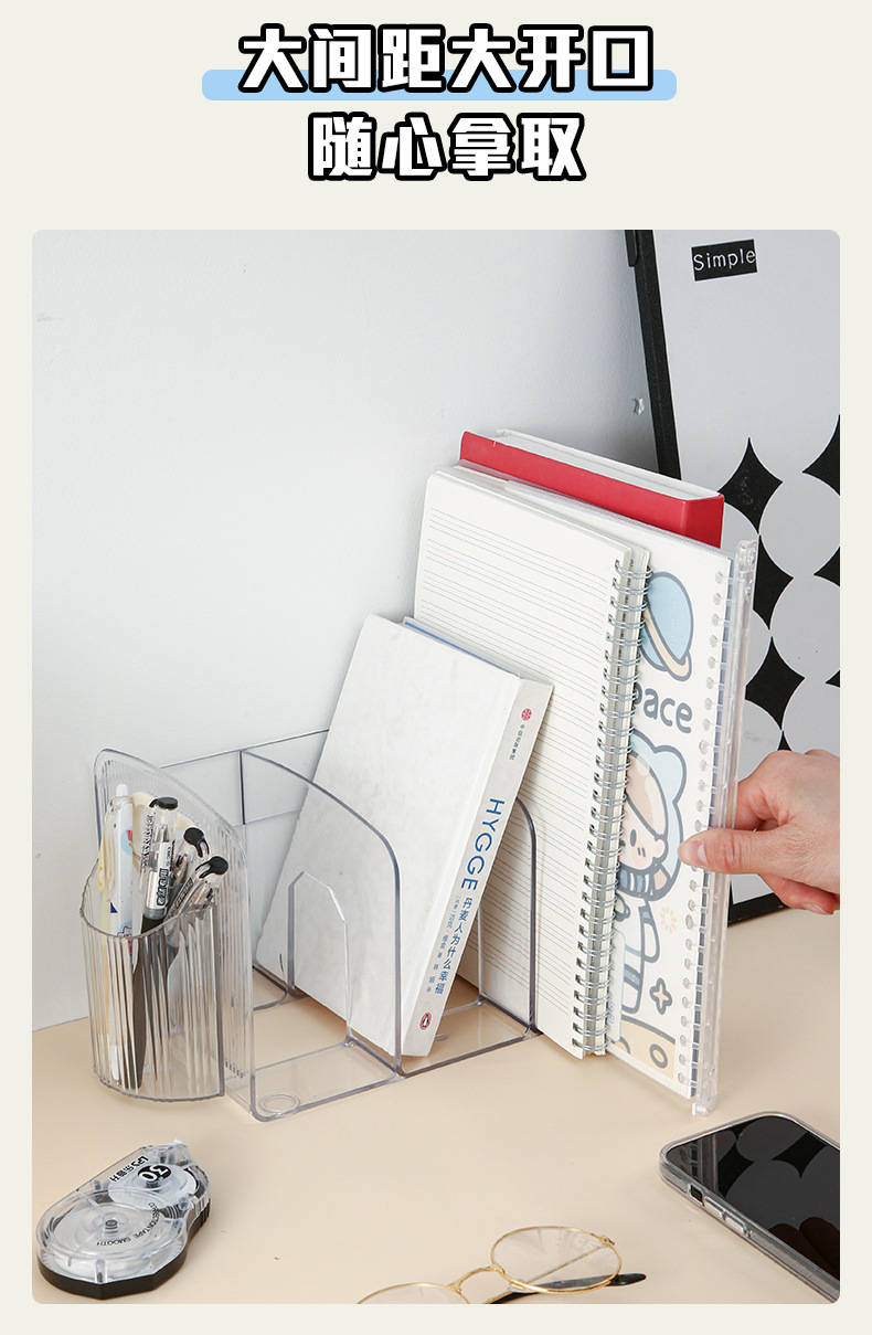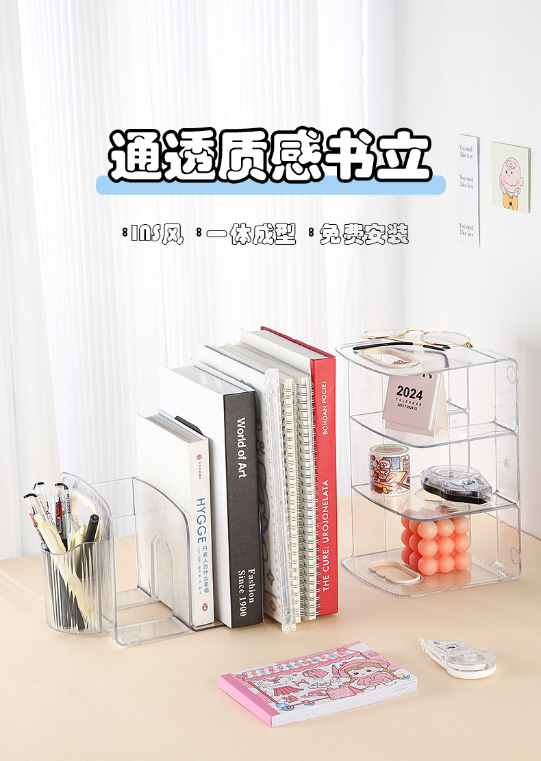 책꽂이 독서용 책받침 책꽂이 데스크탑 디스플레이 스탠드 학생용 투명 아크릴 수납 정리대