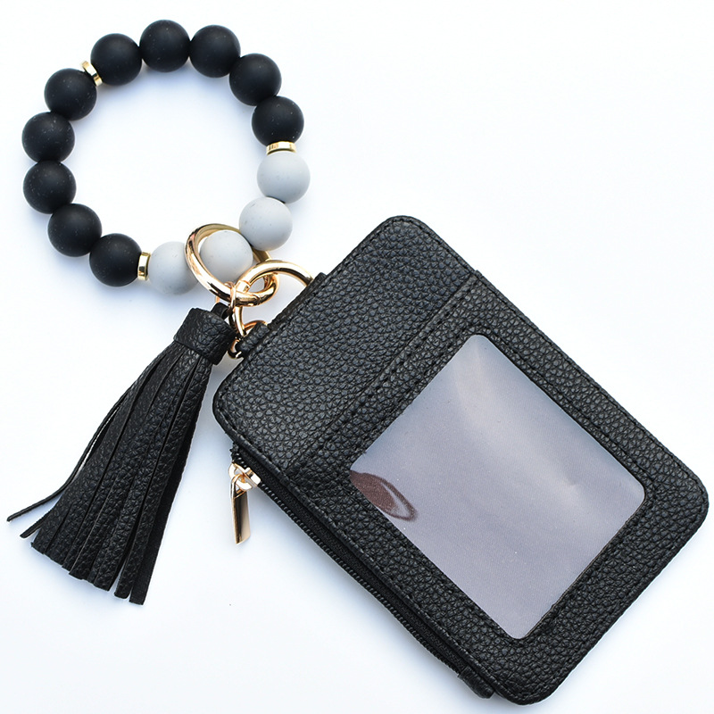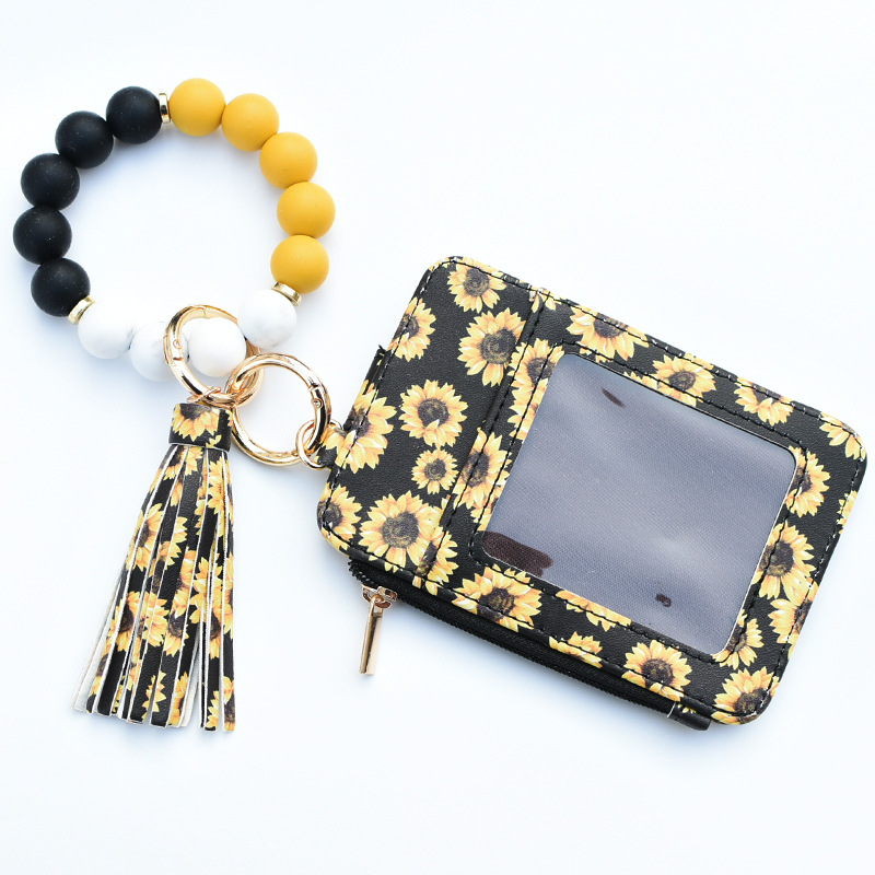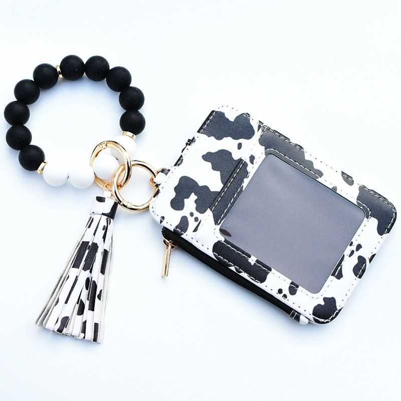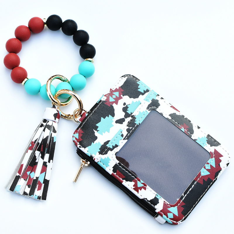 2025년 비즈 팔찌 크로스보더 여성 프린트 동전 지갑 신분증 카드 지갑 PU 테슬 키홀더