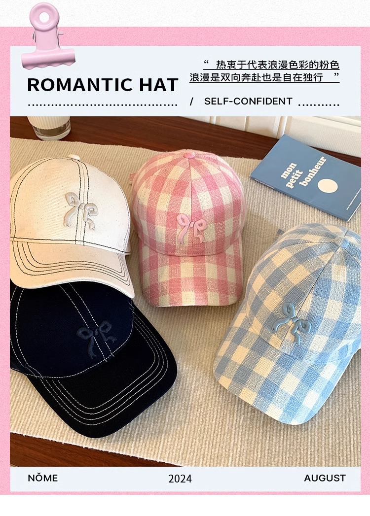 격자 무늬 활 데님 야구 모자 여자 한국식 올매치 빅 헤드 쇼어링 얼굴 작은 심해 브림 덕 혀 트렌디 모자스토어 가기