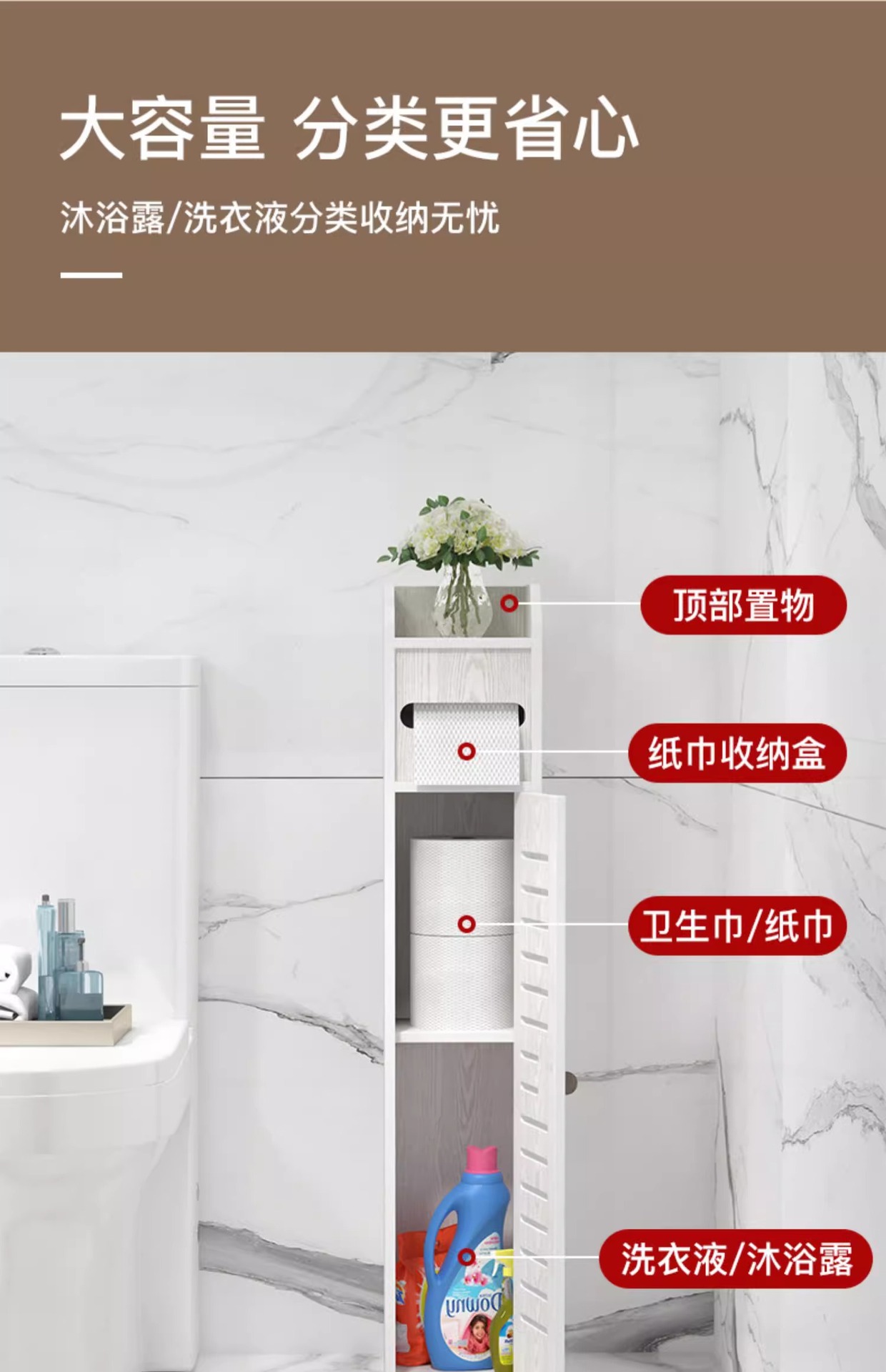 방수 화장실 변기 옆 캐비닛, 좁은 캐비닛, 욕실 틈새 수납 선반, 이동식 틈새 측면 수납장