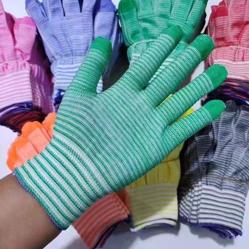 13 핀 다채로운 줄무늬 얇은 나일론 니트 노동 장갑 태양 보호 통기성 높은 탄성 코팅되지 않은 전자 공장 장갑스토어 가기