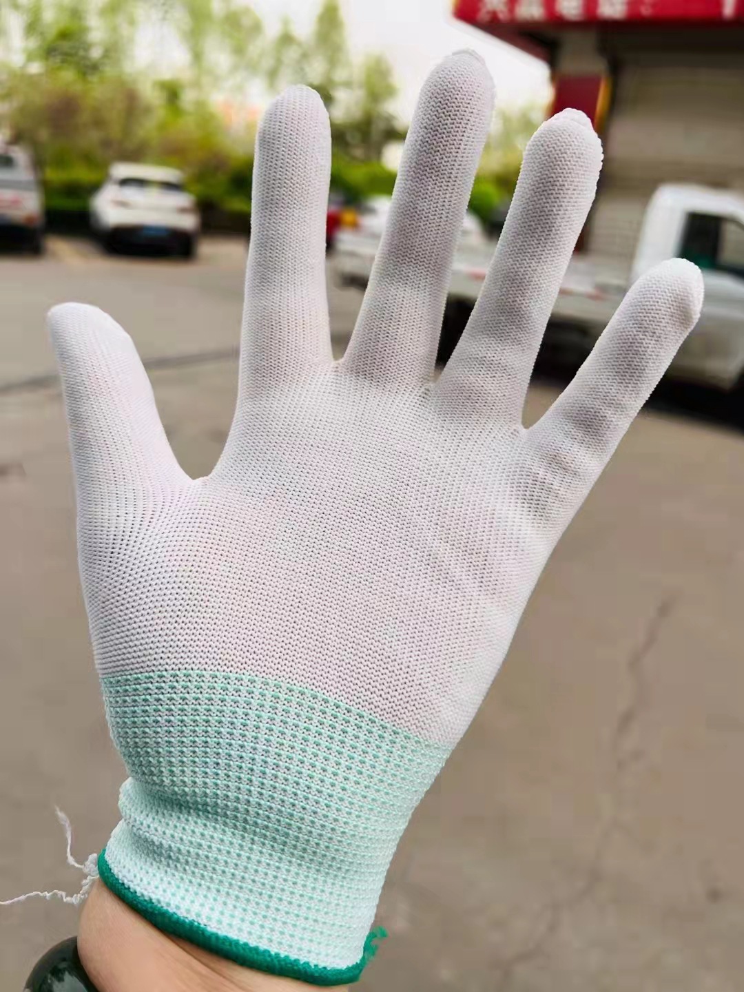 • 13 핀 전체 손가락 흰색 녹색 먼지가없는 작업 장갑