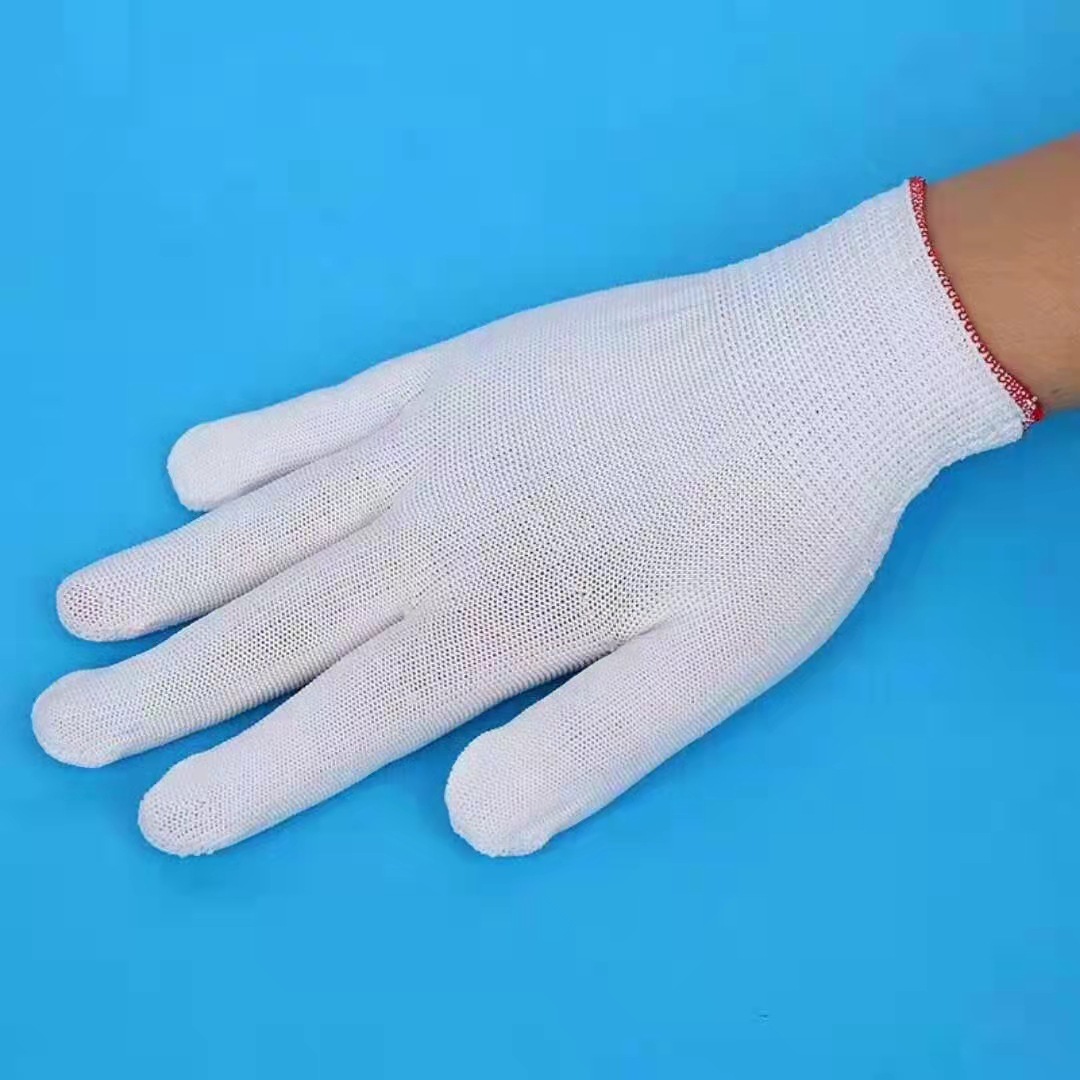 13 핀 다채로운 줄무늬 얇은 나일론 니트 노동 장갑 태양 보호 통기성 높은 탄성 코팅되지 않은 전자 공장 장갑