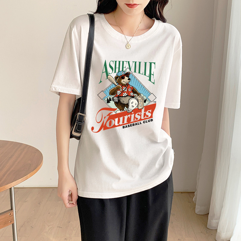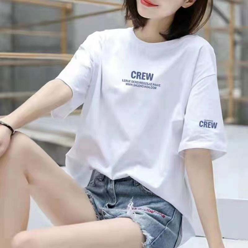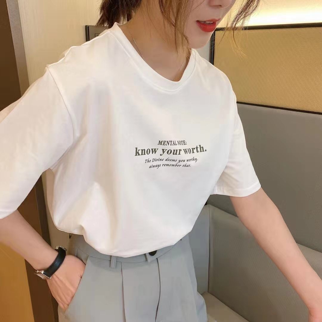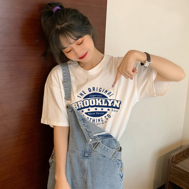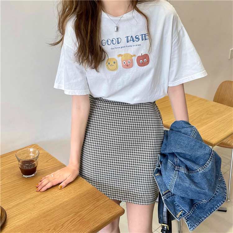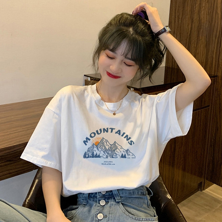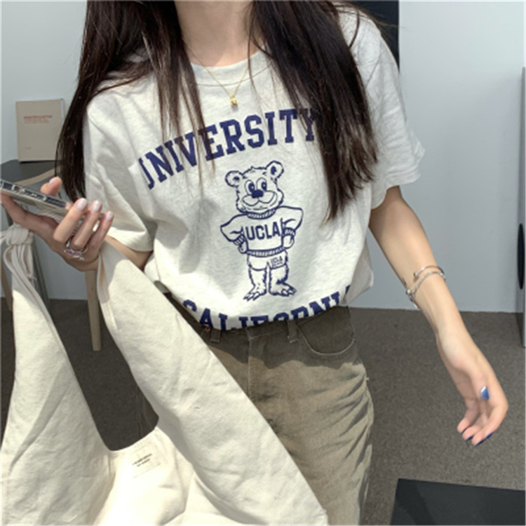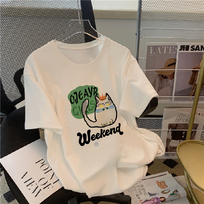 여름 새로운 반팔 티셔츠 여성의 느슨한 한국 스타일 인 여성 올 매치 만화 프린트 내부 하프 슬리브 탑스토어 가기