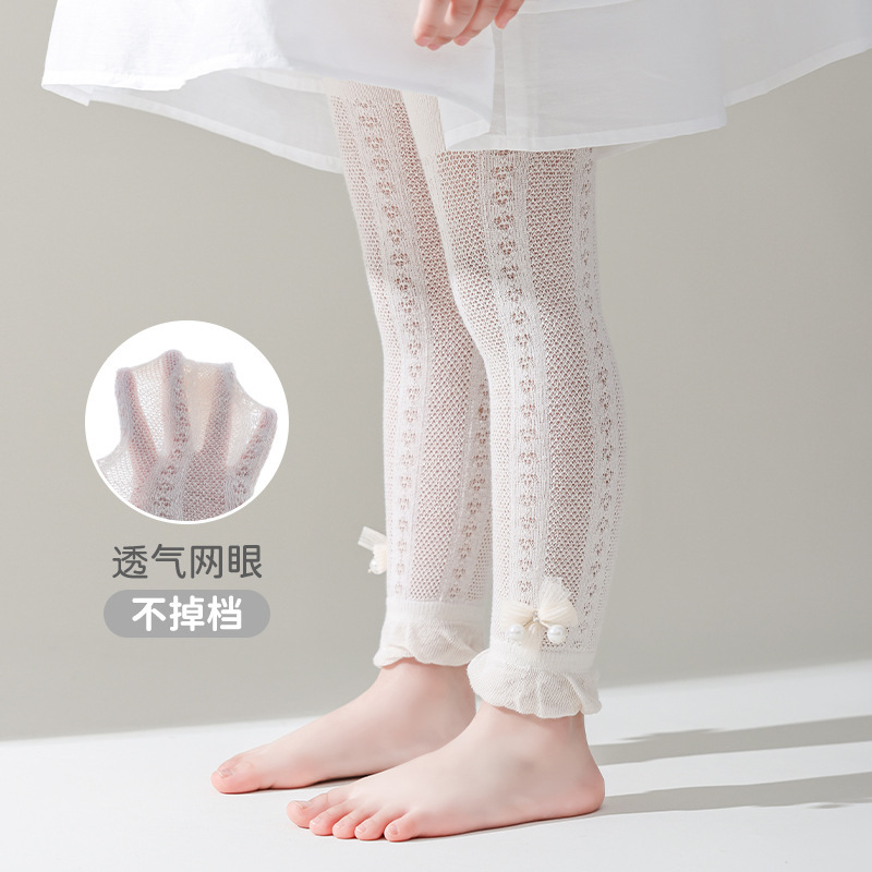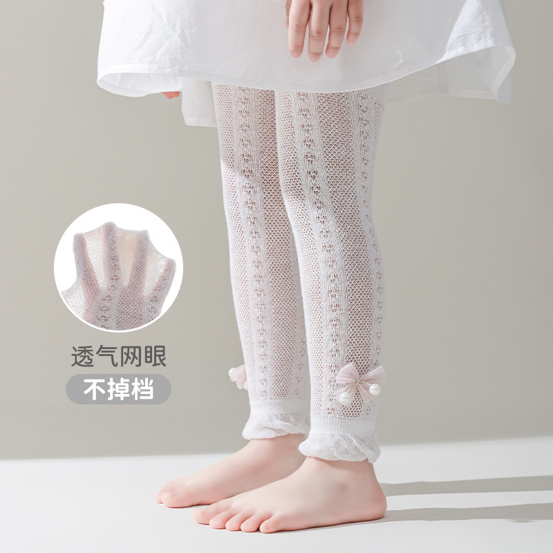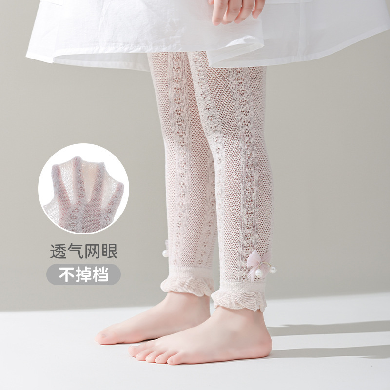 25 여름 어린이 팬티 스타킹 소녀 레깅스 메쉬 얇은 9 점 팬티 스타킹 진주 보우 바지