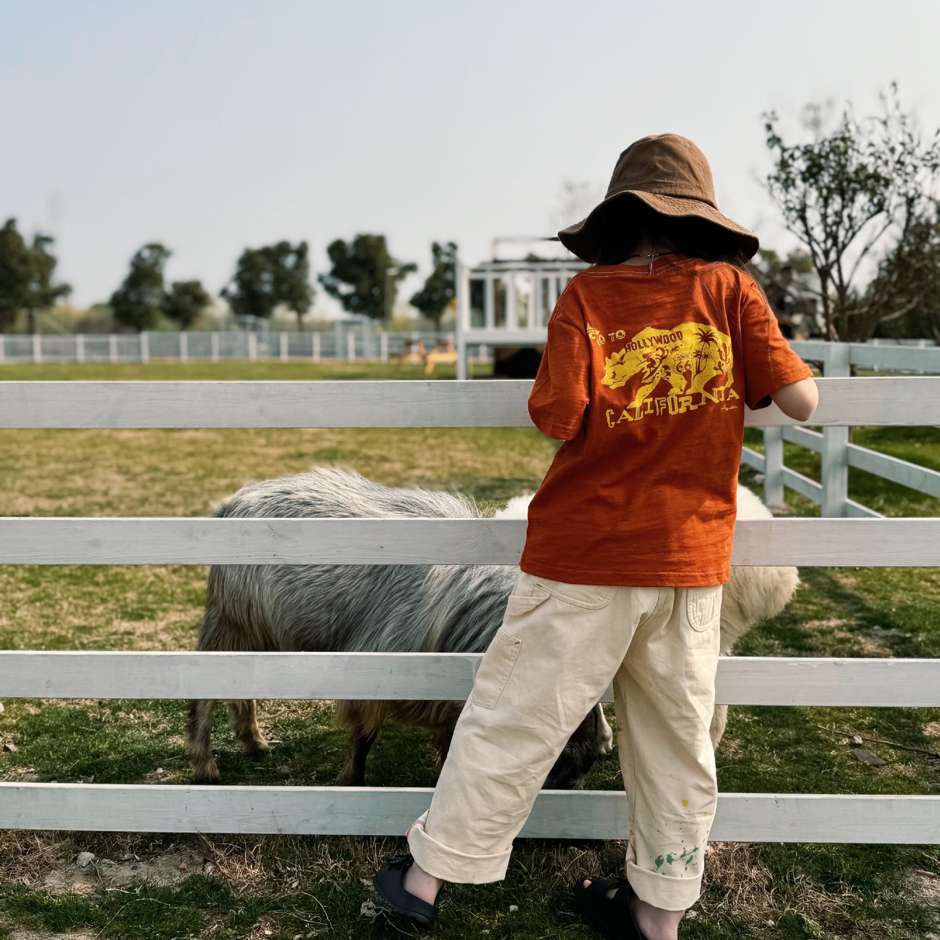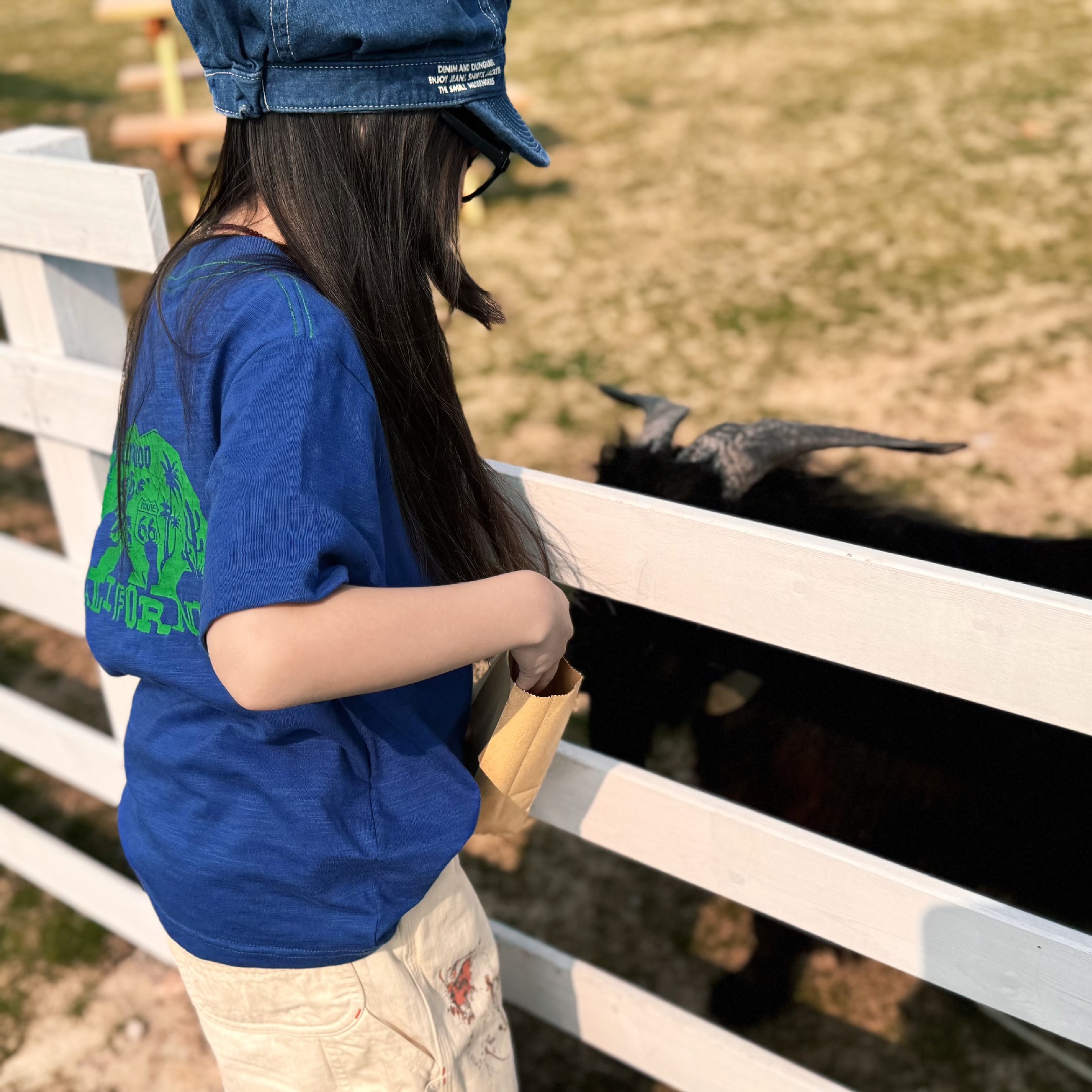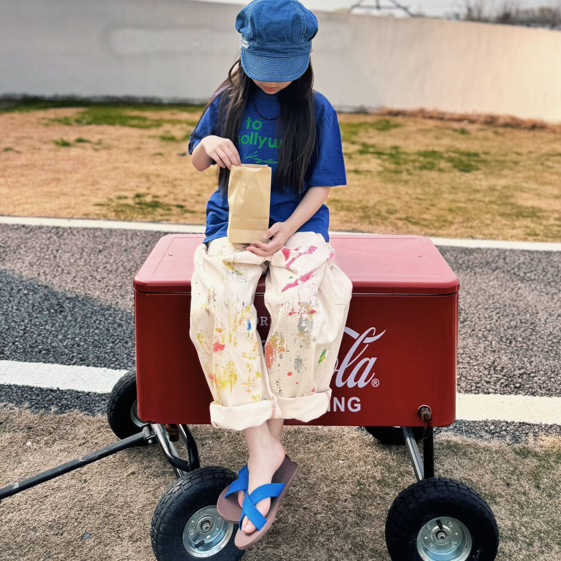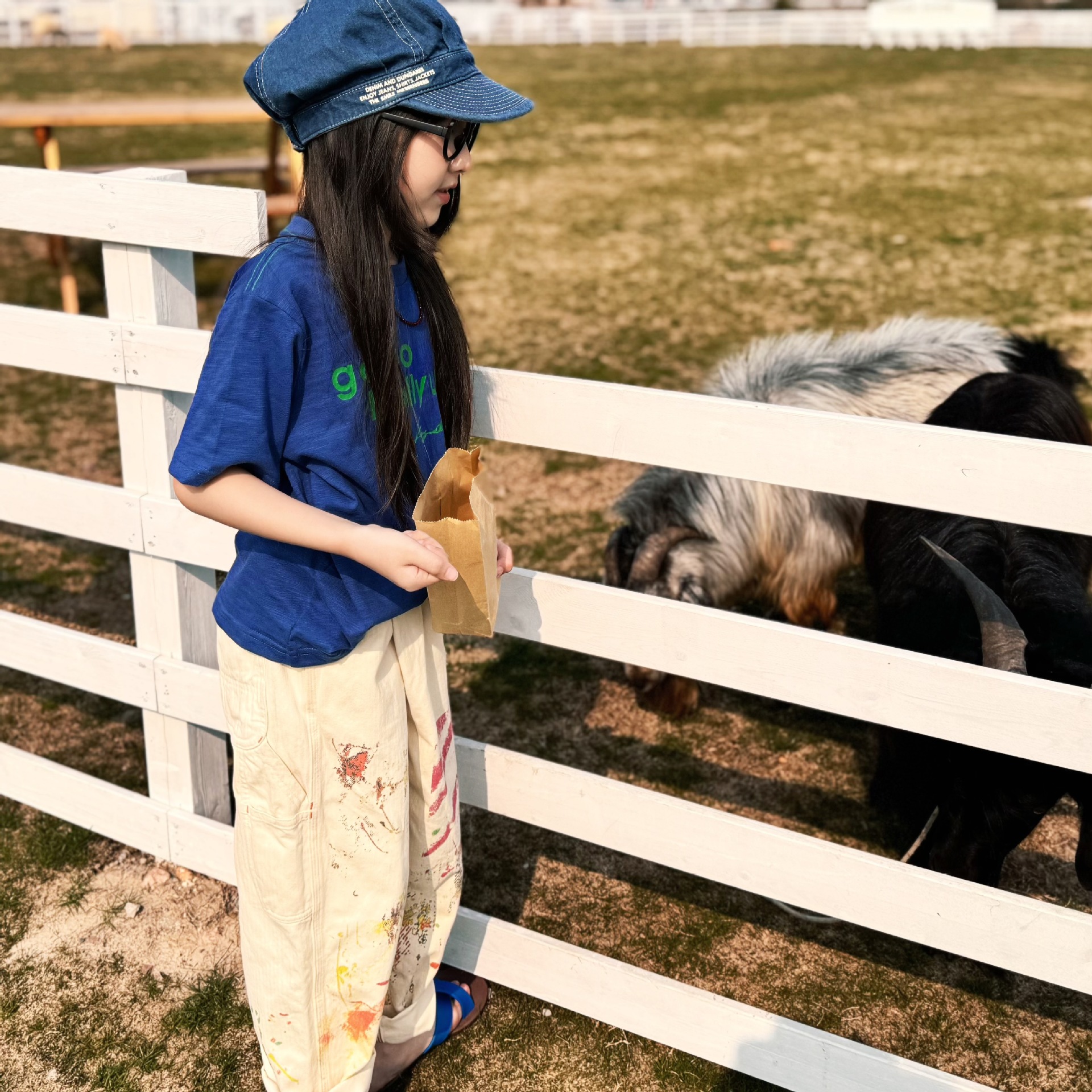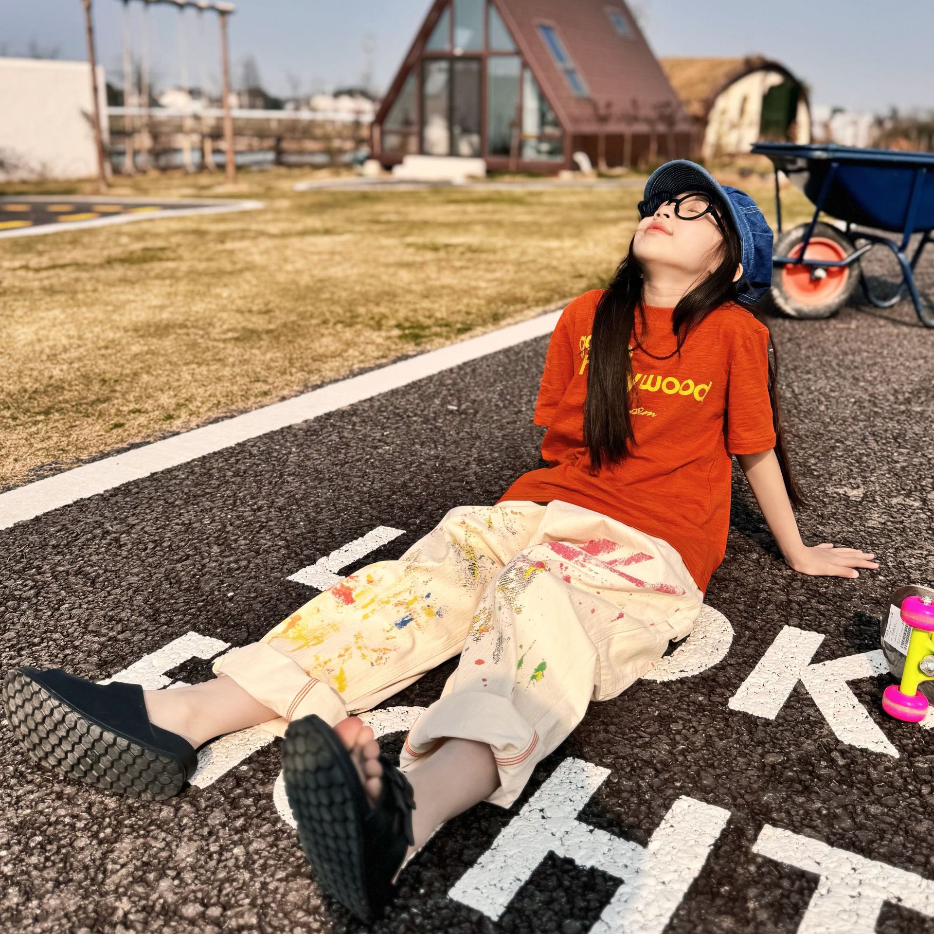 2025 봄과 여름 일본 어린이 편지 만화 소년 소녀 인쇄 둥근 목 반팔 티셔츠 삼색스토어 가기
