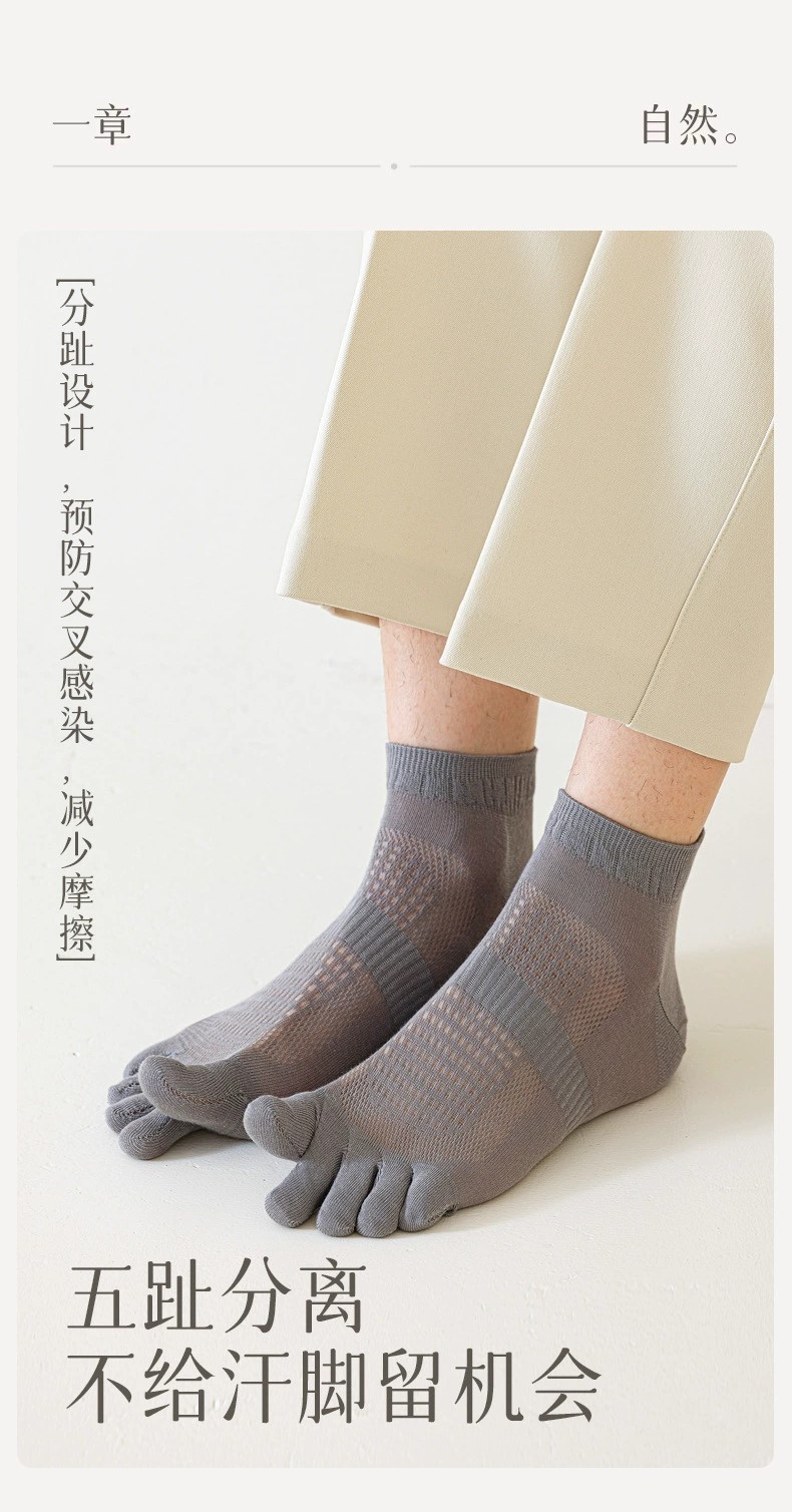 다섯 손가락 양말 남성 양말 여름 얇은 순수한면 메쉬 통기성 로우 컷 발가락 남성 발목 양말