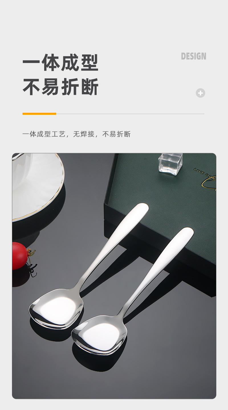 304 스테인레스 스틸 플랫 스푼 호텔 가정용 고급 스퀘어 헤드 디저트 키 스푼 드라이 라이스 스푼 비빔밥 스푼 스푼 야채 스푼