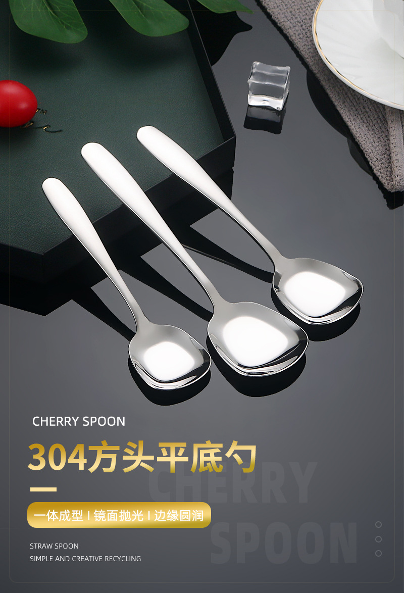 304 스테인레스 스틸 플랫 스푼 호텔 가정용 고급 스퀘어 헤드 디저트 키 스푼 드라이 라이스 스푼 비빔밥 스푼 스푼 야채 스푼스토어 가기