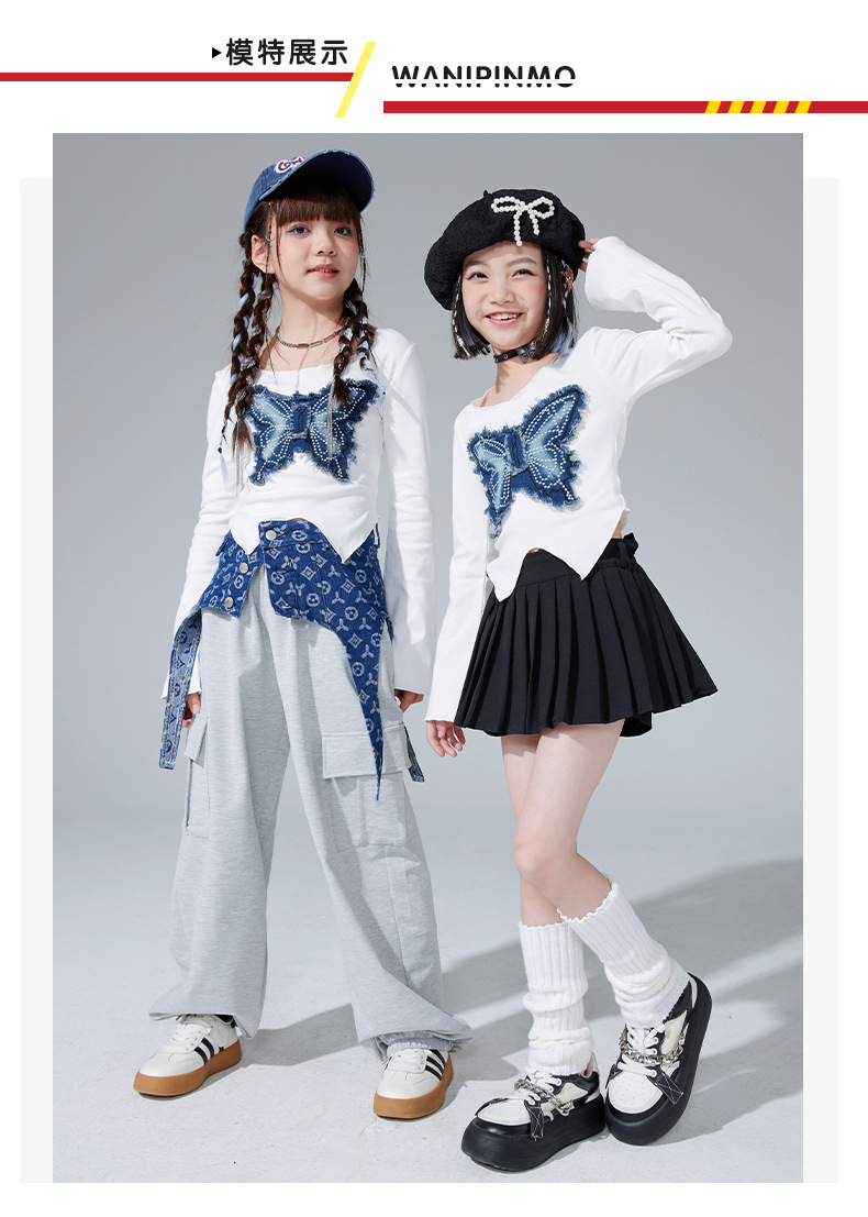 여아 재즈 댄스 공연 의상, 여아 힙합 재즈 슈트, 여아 패션 배꼽 노출 의상, 아동 스트리트 댄스 트렌디 의류