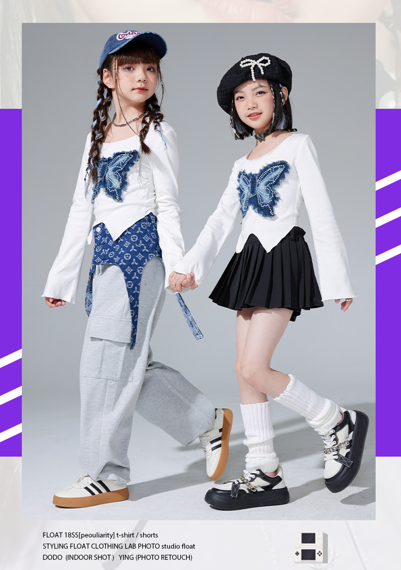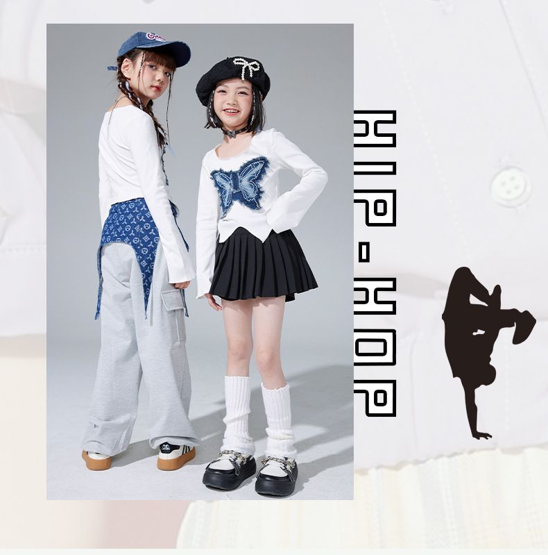 여아 재즈 댄스 공연 의상, 여아 힙합 재즈 슈트, 여아 패션 배꼽 노출 의상, 아동 스트리트 댄스 트렌디 의류스토어 가기