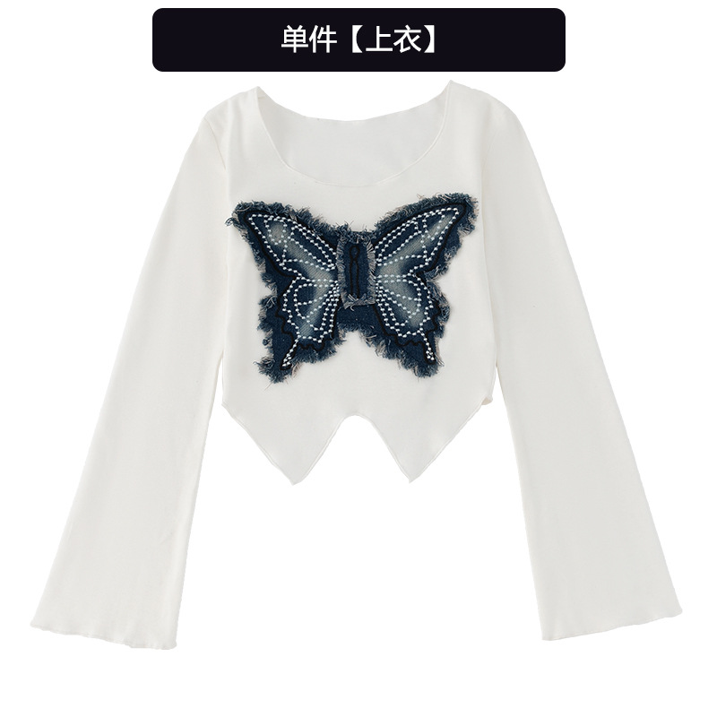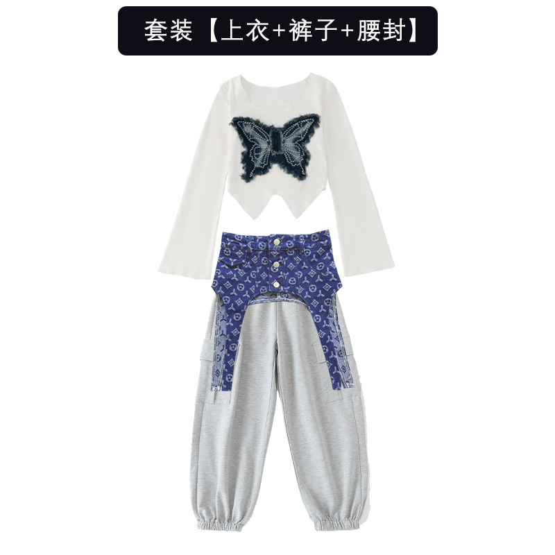 • JA19 나비 긴 소매 + F17 회색 스웨트 팬츠 + 파란색 데님 허리 씰