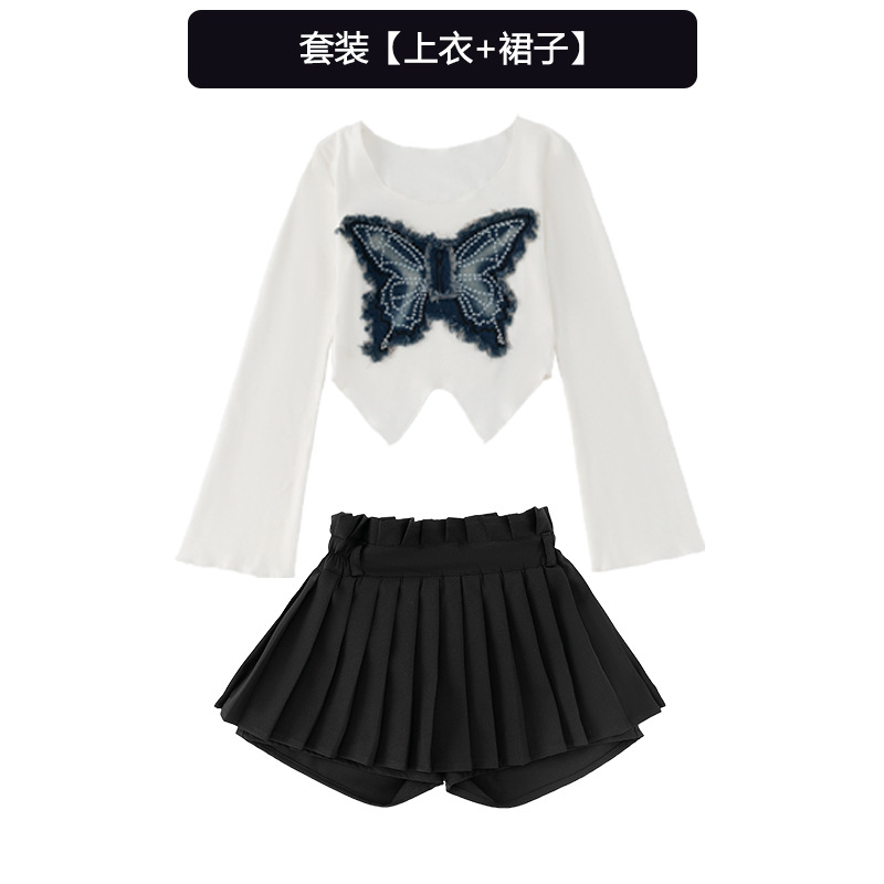 • JA19 나비 긴 소매 + Q02 블랙 주름 치마