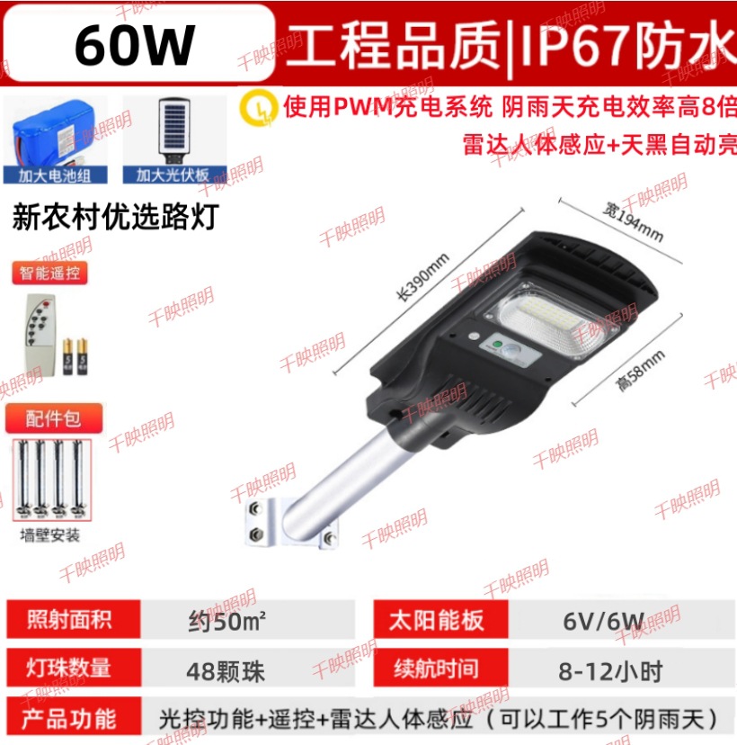 통합 태양 가로등 야외 램프 가로등 정원 램프 농촌 방수 조명 유도 램프 슈퍼 밝은 국경스토어 가기