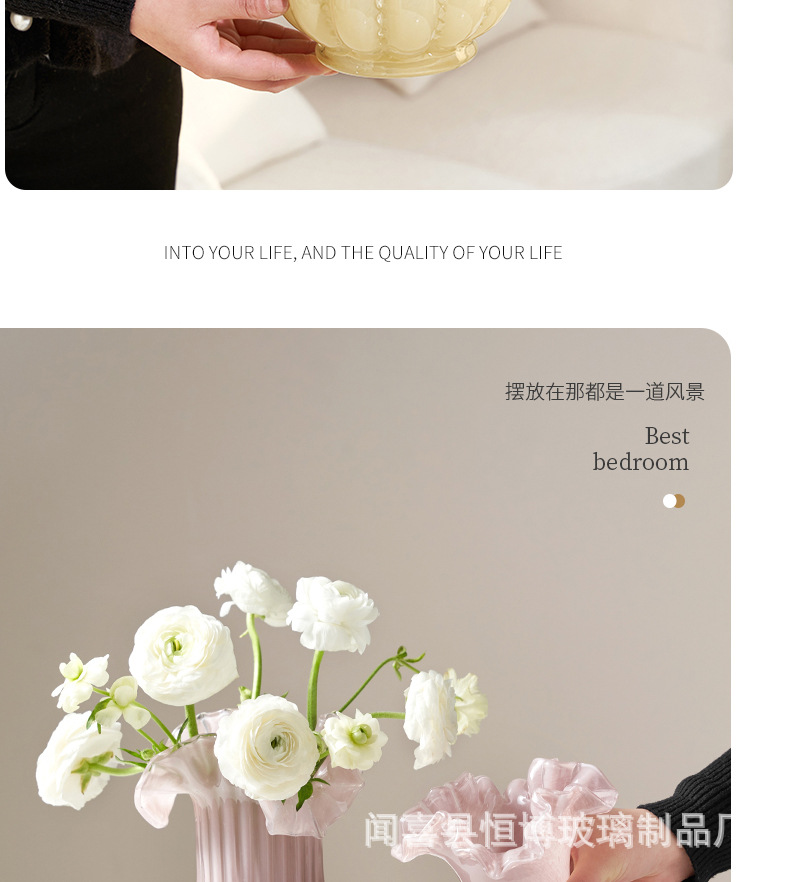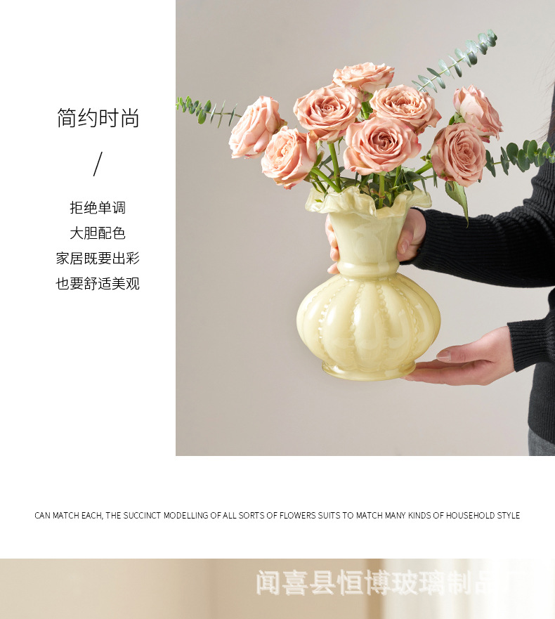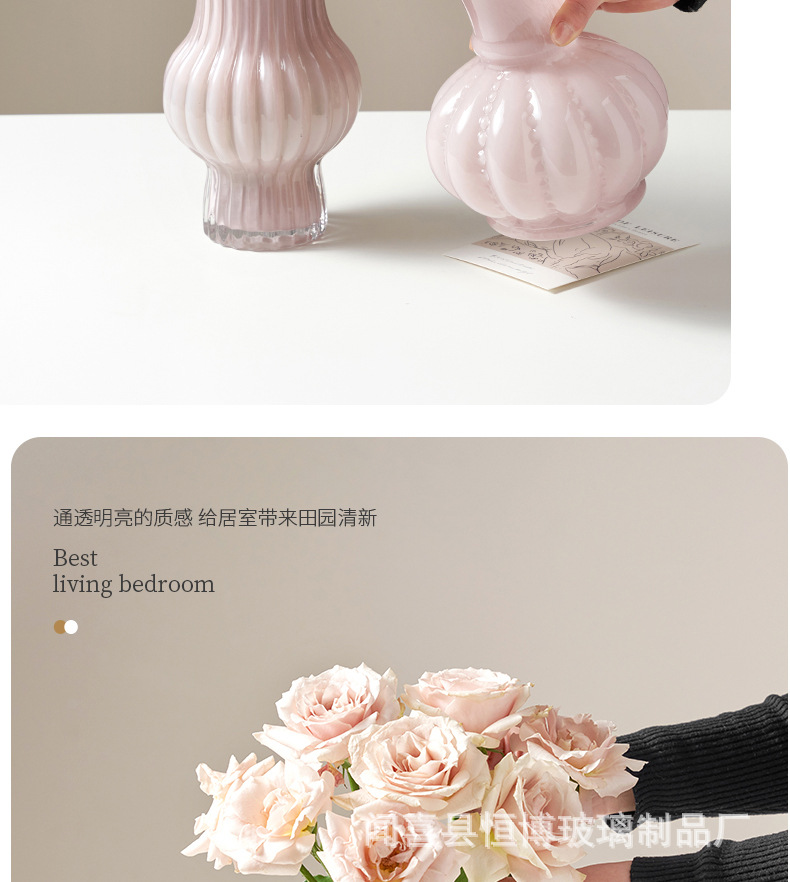 중간 펜턴 꽃병 장식 거실 수화 꽃 하이 엔드 라이트 럭셔리 유리 핑크 창조적 인 간단한 꽃병스토어 가기